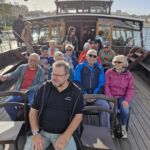 Pünktlich treffen wir uns alle, besteigen das Boot und hoffen, dass das Wetter hält. Aber wir haben wieder einmal Glück, können beide Ufer des Flusses trocken bestaunen und unterfahren die sechs Brücken, die beide Seiten verbinden.