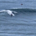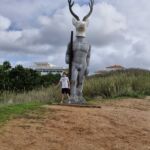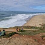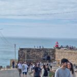 Jetzt fahren wir nach Nazare. Vom Parkplatz laufen wir zu Fuß den Anstieg zum alten Ortskern hoch und dann weiter zum alten Leuchtturm. Hier könnten wir, wenn sie denn da wären, die Monsterwellen beobachten. Bis über 25 m hoch, heute jedoch max. 2 – 3 Meter. Aber trotzdem ein wunderbares Naturschauspiel.