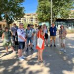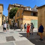 Heute fahren wir vom Campingplatz aus mit dem Bus in die Stadtmitte von Aix-en-Provence, um uns mit unserem Guide Sonia für die Stadtbesichtigung zu treffen. Aix hat 140 000 Einwohner, ein Drittel davon sind Studenten, die hier hauptsächlich Jurisprudence studieren; die Stadt entstand als erste römische Siedlung in Gallien, nachdem die Kelten besiegt wurden. Der ursprüngliche Name Aquae Sextia Saluviorum gibt schon einen Hinweis auf die Heilquellen – aix = Wasser. Die Stadt besitzt insgesamt 106 Brunnen. Ihren Aufstieg verdankte sie zudem ihrer Lage an der Via Aurelia. Wir gehen zunächst auf den großzügigen Boulevard Cours Mirabeau, denn hier siedelten sich viele Adelige und noble Familien an, die teilweise auch noch heute, zumindest zeitweise, leben. Auch dem Roi René ist ein Brunnen gewidmet. Der König hält Trauben der Rebsorte Muscat in der Hand, die er in der Provence eingeführt hatte. Paul Cézanne ist ebenso ein berühmter Sohn der Stadt und ging mit dem Schriftsteller Émile Zola ins hiesige Gymnasium, da sich beide als Außenseiter fühlten, schlossen sie miteinander eine dicke Freundschaft. Vorbei am Palais de Justice zum Platz de l‘Hôtel de Ville mit einem Brunnen von 1755. Das Rathaus wurde von 1652 bis 1668 im italienischen Barock erbaut. Daneben steht das Stadttor Tour de l‘Horloge von 1510, die astronomische Uhr kam erst 1661 dazu. Der Weg führt uns weiter zur Cathédrale St-Sauveur und ist ein Mix aus fünf Baustilen. In ihrem Inneren sehen wir das Triptychon „Maria im brennenden Dornbusch“ von 1476. Die Orgel gibt es aus optischen Gründen in zweifacher Ausführung, wobei nur die an der linken Seite genutzt werden kann. Alle sind der Meinung, dass Aix eine Stadt mit besonderem Flair ist. Am Abend sitzen wir noch gemütlich bei einem Gläschen Wein zusammen und stoßen auf Klaus heutigen Geburtstag an.