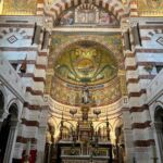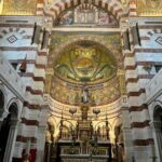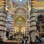 Claude, unser heutiger Guide führt uns zunächst in die Geschichte von Marseille ein, eine lebendige und multikulturelle Stadt und die zweitgrößte Frankreichs, mit 876 000 Einwohnern und sogar über einer Million, wenn man die Umgebung mit einbezieht. Die Geschichte ist wechselvoll: zuerst die Griechen, dann die Römer, Einwanderung und Handel verdankt sie ihren Ursprung. 1721 wütete die Pest und von den damals hier lebenden 90 000 Menschen verstarben 50 000. Im 16. Jahrhundert blühte der Handel mit den Kolonien und mit der Eroberung Nordafrikas um 1830 entwickelte sich die Stadt zum größten Hafen Frankreichs. 1943 wurden große Teile der Altstadt von den Deutschen und Italienern gesprengt und 1943/44 bombardierten auch die Alliierten das Gebiet. Während dem Algerienkrieg kamen viele Rückwanderer aus den Kolonien, sowie Einwanderer aus dem Maghreb und Schwarzafrika – deswegen musste neuer Wohnraum geschaffen werden. Wir besuchen Notre-Dame de la Garde, das Wahrzeichen der Stadt, die auf einem 157 Meter hohen Felsen thront und der „Bonne Mère“ ist. Die 11 Meter hohe und 150 Tonnen schwere, vergoldete Madonnenstatue mit eingebauter Treppe ist schon imposant anzusehen. In der Wallfahrtskirche zieren Votivgaben, denen Wunder nachgesagt werden, sowie Flugzeug- und Schiffsmodelle und ein wunderbares Mosaikrelief die Wände. Im Anschluss bringt uns der Bus an der Festung von Ludwig XIV. vorbei zum alten Hafen. Der alte und der neue Hafen beherbergen Boote aller Art und Größen. Es schließt sich eine Rundfahrt durch die neuere Stadt an. Vorbei an Dom und Bahnhof mit der riesigen historischen Treppe geht es zum Palais Longchamp, einem prächtigen Wasserschloss, an dem eine 85 Kilometer lange Wasserleitung von der Durance endet. Mit dem Wasser könnten alle Einwohner versorgt werden. Das älteste Viertel von Marseilles ist das Panier, durch das wir eine Weile spazieren gehen, es kommt einem so vor, als weile man in einem bunt bepflanzten Dorf – die kleineren Geschäfte besitzen nicht die Eleganz der „großen“ Marken in der Einkaufsmeile der Stadt, sondern eher Nischenprodukte (wie Boggiakugeln) – individuell und mit Herzblut geführt. Man wünscht der teils ärmeren Schicht, dass sie nicht das gleiche Schicksal wie z. B. in Berlin-Kreuzberg ereilt. Wohnraum mit zu hohen Mieten sind dann nicht mehr bezahlbar und sie müssten voraussichtlich mit Plattenbauten außerhalb der Stadtmitte vorliebnehmen – noch mehr sozialer Sprengstoff, wovon es hier schon genug gibt, man denke nur an den Drogenhandel, den der große Hafen begünstigt. Schade, dass die Zeit dort zu kurz ist, um noch mehr von dieser Stadt kennenzulernen, die so ganz anders rüberkommt, als wir es im Vorfeld gedacht hatten. Nach Rückkehr zu unserem Campingplatz in Cassis findet dann noch die Fahrerbesprechung für den kommenden Tag statt und wir lassen den Tag ruhig ausklingen.