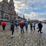 Gegen 09.30 Uhr werden wir von unserem Bus zusammen mit dem uns begleitenden Fremdenführer Manuel abgeholt. Bereits auf dem kurzen Weg in die Altstadt von Santiago de Compostela erhalten wir die ersten Hinweise und Erläuterungen über die Hauptstadt Galiciens. Am Ziel angekommen, geht es dann direkt zur Kathedrale des hl. Jakobus, dem Endpunkt des Jakobsweges. Auf dem Vorplatz treffen bereits die ersten Pilger ein. Die ersten 10 Pilger des Tages erhalten noch heute im benachbarten Parador-Hotel Hospital de los Reyes Catolicos am Tag des Eintreffens drei kostenlose Mahlzeiten. Dann besuchen wir die Kathedrale.