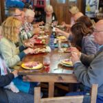Angekommen in unserem neuen Camp, wunderschön an einem Bach gelegen, treffen wir uns zu unserer täglichen Besprechung und im Anschluss daran findet die KUGA-Schinkenverkostung statt. Gemütlich bei Schinken, Käse, Wein, Bier und guter Stimmung lassen wir den Tag ausklingen.