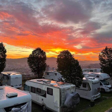 Heute Morgen werden wir in Bilbao von einem prächtigen Sonnenaufgang überrascht.