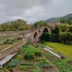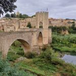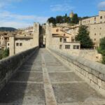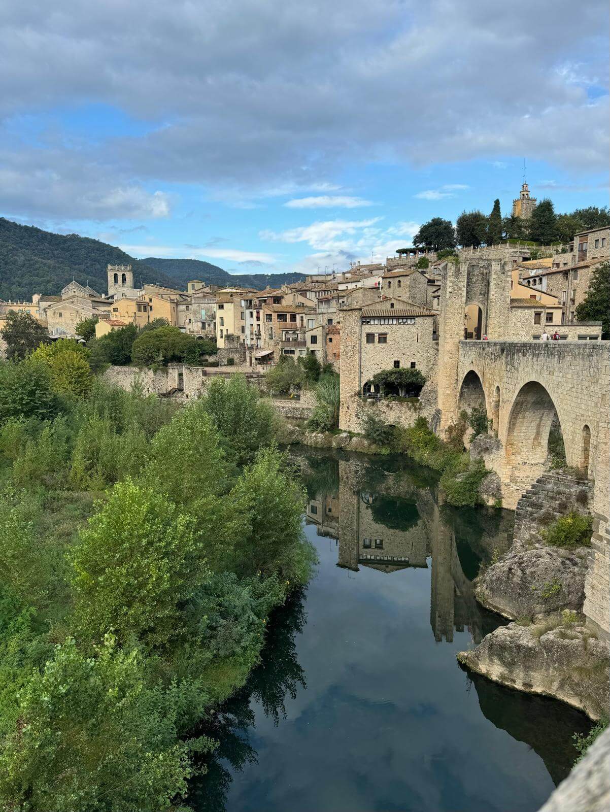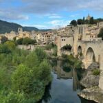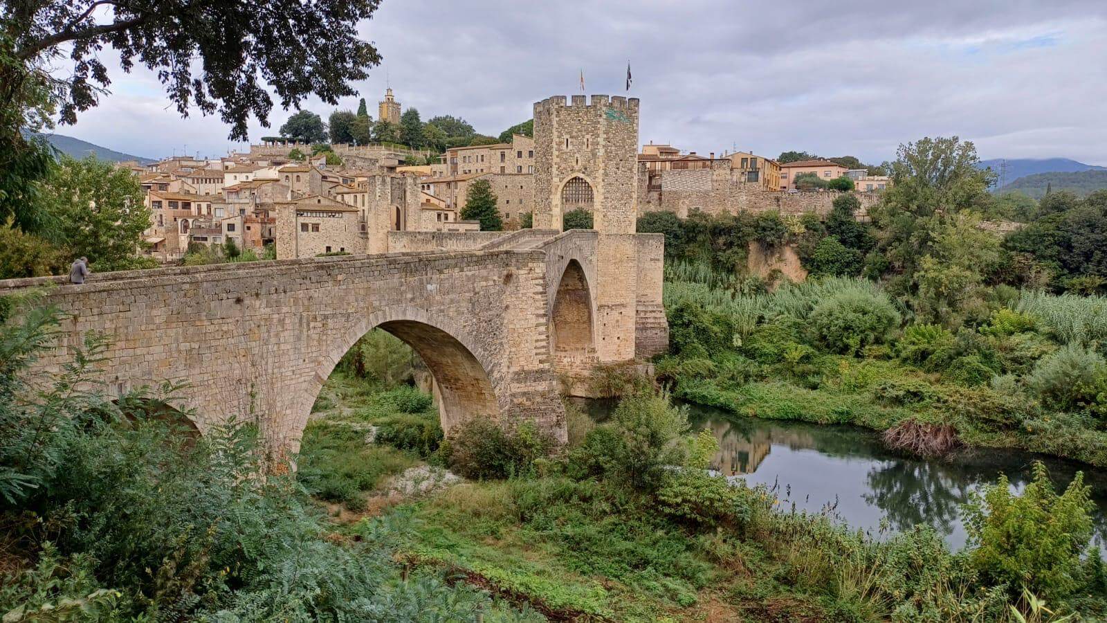 Heute starten wir unsere Wohnmobile zur ersten Fahretappe. Diese führt uns über zwei Pässe mitten hinein in die Gebirgslandschaft der Pyrenäen. Nachdem sich einige in den Supermärkten von Roses mit dem Nötigsten versorgt haben, legen wir in Besalú einen ersten Zwischenstopp ein. Den kleinen Ort mit einem mittelalterlichen Stadtkern betreten wir über die 1315 errichtete Bogenbrücke, in deren Mitte sich ein Wehrturm mit Fallgitter befindet.