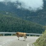 Danach überqueren wir den 1790 m hohen Pass „Collada de Toses“. Oft sind vierbeinige Bewohner der Landschaft anzutreffen; mit ein wenig Geduld lassen sie uns schließlich vorbeifahren.