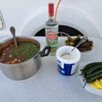 Unser neues Reiseleiterpaar Tatjana und Rainer bereiten für alle eine Vorspeise zu: eine Soljanka! Eine Suppe mit vielen leckeren Fleisch- und Gemüseeinlagen, mit Sahne, Zitrone und scharfem Chili und davor ein Wodka – das gehört unbedingt dazu!