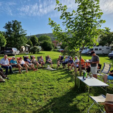 Im weiteren Verlauf der Strecke, die uns immer wieder schöne Ausblicke auf das Meer freigibt, sehen wir schon die ersten östlichen Ausläufer des Balkangebirges. Kurz vor Nessebar erreichen wir unseren Campingplatz am Schwarzen Meer. Wir haben den schönen Platz fast für uns alleine. Es ist am späten Nachmittag sonnig warm. Nach unserer obligatorischen Besprechung nutzen viele die Gelegenheit, um in einem der naheliegenden Restaurants zu Abend zu essen.