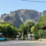 Die 300 m hohen Felstürme von Meteora künden uns an, dass wir gleich unser heutiges Ziel „Camp Meteora“ erreicht haben.
