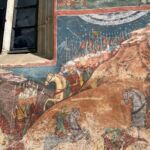Im Best Western Hotel in Gura Humorului genießen wir unser Mittagsmenue. Danach geht es weiter zum Kloster Humor. Es wurde 1530 unweit der Ruinen eines Vorgängerbaus errichtet und ist damit eine der ältesten bemalten Kirchen der Region. Das Besondere an dieser Kirche ist die offene Vorhalle und die Geheimkammer über der Grabkammer. Die Bemalung der Kirche erfolgte 5 Jahre später. Das Besondere an der Außenbemalung ist die Darstellung der Belagerung Konstantinopels durch die Perser, wobei sich der örtliche Künstler die Freiheit genommen hat, die Hofburg der nahegelegenen Stadt Suceava und deren Angreifer, die Türken und Tartaren, darzustellen. Auch hatte die Kirche damals noch keinen Turm. Dieser und die Wehrmauer wurden rund 100 Jahre später, also 1641, errichtet. Daneben steht die neu gebaute Kirche.