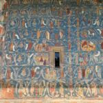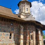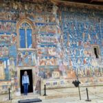 Stefan der Große wollte für jeden Sieg auf dem Schlachtfeld ein Gotteshaus errichten, um Gott für seinen Beistand zu danken. Im Laufe der Zeit sind durch seine Siege über die Polen, Türken und Ungarn auf diese Weise ca. 40 Kirchen und Klöster, die sogenannten Moldauklöster, in der Nähe seines Hauptsitzes Suceava entstanden. Acht Klöster sind UNESCO-Weltkulturerbe und die vier schönsten davon wollen wir besichtigen. Einzigartig bei allen Moldauklöstern ist die nahezu 500 Jahre alte Freskenmalkunst an den Außenwänden der Kirchen mit einer einzigartigen frischen und intensiven Farbmischung, die bis heute noch ein Geheimnis ist. Eine Besonderheit ist die intensive blaue Farbe, die nach neuesten Erkenntnissen aus Azurit hergestellt wurde. Die Fresken erzählen biblische Geschichten. Es war also die Bibel der armen Bevölkerung, von denen damals die wenigsten lesen konnten. Unser erstes Ziel ist das 1532 erbaute Kloster Moldovita. Mit seiner meterhohen Mauer, den Wehrtürmen und dem wuchtigen Eingangstor macht es von außen eher den Eindruck einer Festung. In der ehemaligen Abtwohnung befindet sich heute ein Museum. 1537 erfolgte die Außenbemalung, die -bis auf die Nordseite- noch sehr gut erhalten ist. Im Vergleich zu den anderen Moldauklöster ist die Bemalung von Moldovita wesentlich detailreicher. Das Kloster dient heute als rumänisch-orthodoxes Frauenkloster und wird von 38 Nonnen bewirtschaftet. Wer denkt, Klosterführungen sind etwas Langweiliges, der wird heute von der Nonnenschwester Tatjana eines Besseren belehrt. Auf anschauliche und humoristische Weise erklärt sie uns im Rahmen der kurzweiligen Führung die Geschichte der Moldauklöster und deren kunstvolle Fresken. Heute gestaltet sie die Führung sehr ausführlich, aber nachwievor sehr interessant.
