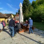 Das Wetter erlaubt uns, die obligatorische Fahrtagbesprechung draußen durchzuführen. Es werden Getränke, wie Bier und Wein, spendiert und so lassen wir den erlebnisreichen Tag bei einem kleinen Lagerfeuer gemütlich ausklingen.