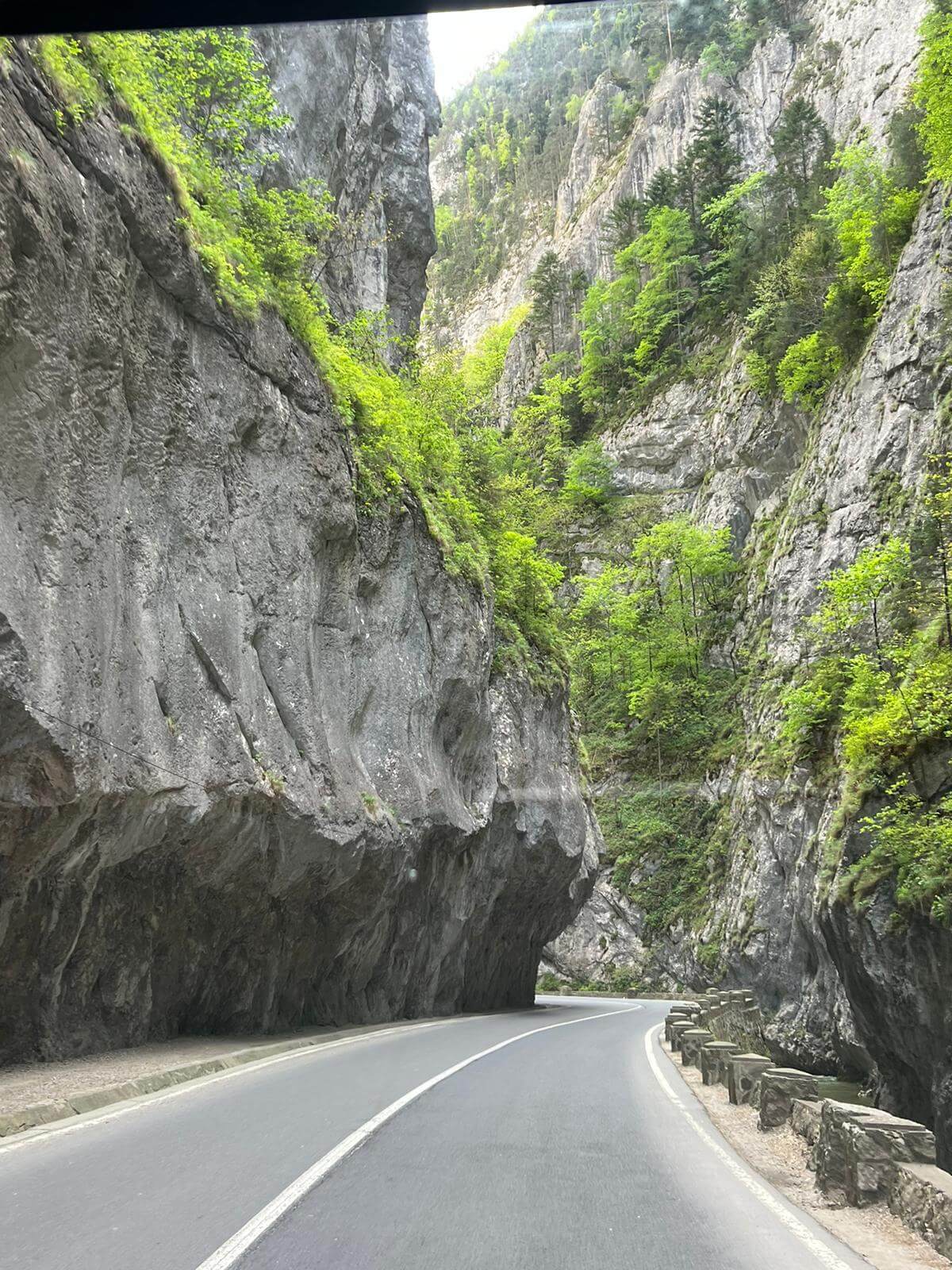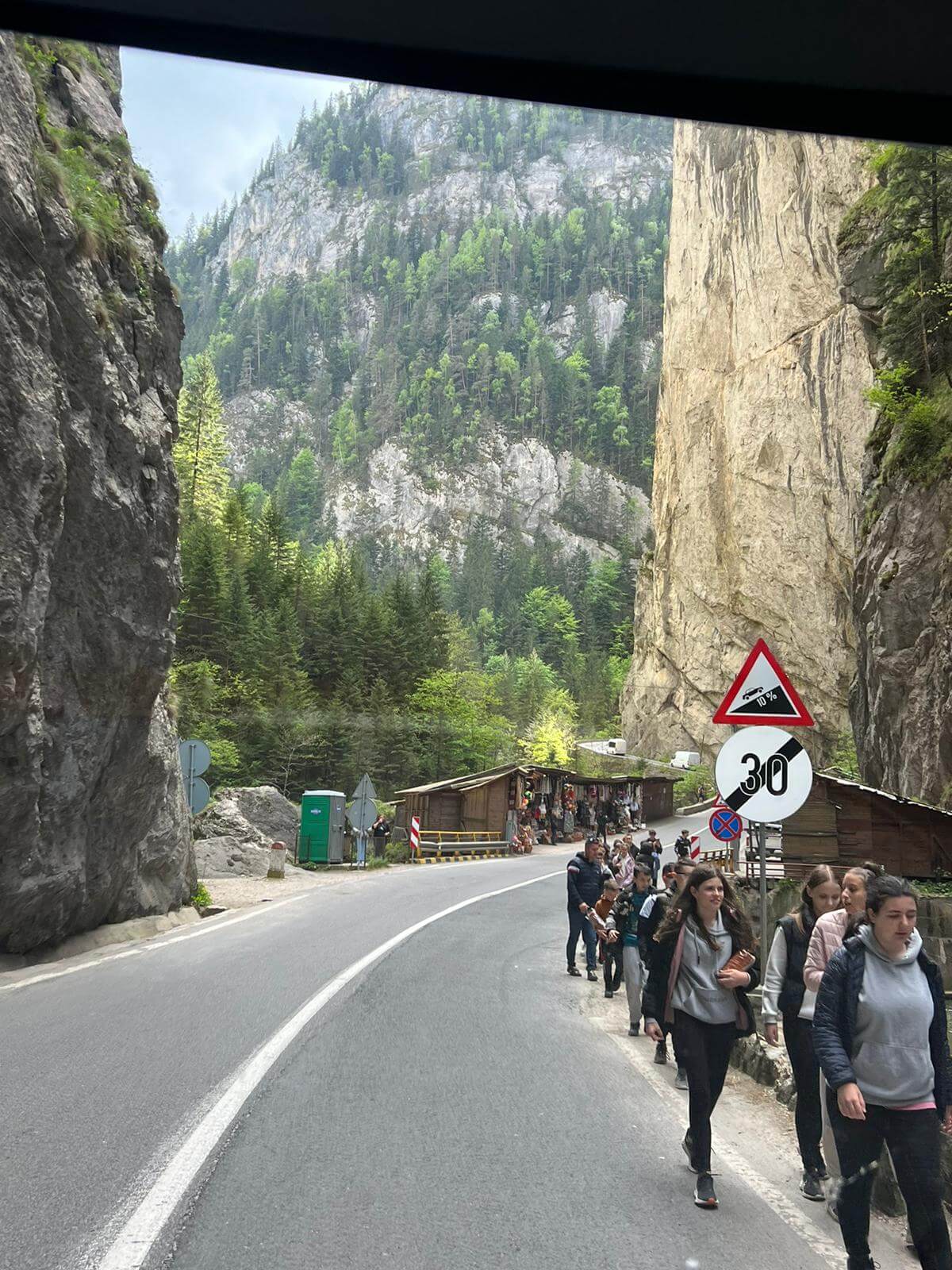 Wir haben eine beeindruckende Fahrt durch die Klamm mit ihren 200–300 m hohen steilen Felswänden. Aufgrund der Felsüberhänge ist Konzentration und fahrerisches Können gefragt. Wir meistern alle diese fabelhafte Strecke ohne Probleme. Zwischendurch gibt es Gelegenheit an Ständen regionale Produkte, Souveniers und Andenken zu kaufen. Oben am Pass erreichen wir ein bei den Einheimischen beliebtes Ausflugsziel: Lacul Rosu, benannt nach der eisenhaltigen Tonerde, die dem See seinen Namen gab. Entstanden ist der See 1837 durch einen Felssturz.