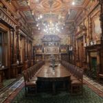 Schließlich besichtigen wir die prunkvollen Räume, die auch dem späteren Regime Rumäniens zur Unterbringung von Staatsgästen gedient hat. Man sieht: hier wurde nicht gekleckert, sondern geklotzt: die vielen Räume und Säle übertreffen sich mit kunstvollen Holzvertäfelungen und goldenen Verzierungen.