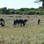 Die Wildpferede sind scheu und nur mit Glück auf dem Plateau zu sehen. Wir haben eben das Glück und erwischen die kleinwüchsigen Pferde mit Schulterhöhe von 1,2 m beim Grasen.