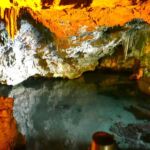 Nach etwa 45 Minuten Fahrt entlang der Küste erreichen wir das Cap und legen am Eingang einer beeindruckenden Tropfsteinhöhle an. Die Herkunft des Namens – Caccia bedeutet auf Italienisch „Jagd“. Die bekannteste der vielen Höhlen ist die Neptungrotte (Grotta di Nettuno), die entweder über eine entspannte Bootsfahrt oder über 600 Treppenstufen mit atemberaubender erreicht werden kann. In ihrem Inneren der ca. 70 Millionen Jahre alten Höhle erleben wir ein faszinierendes Labyrinth aus Stalaktiten und Stalagmiten.