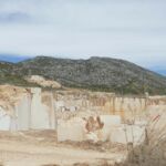 In einem Marmorsteinbruch sieht man die gewaltigen Dimensionen Maschine und Natur.