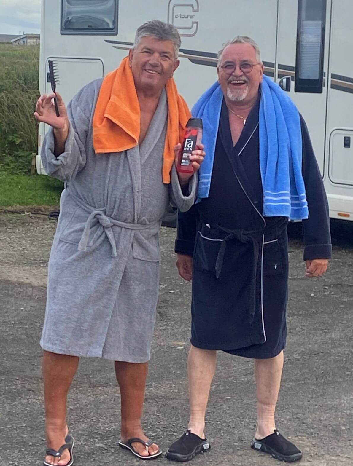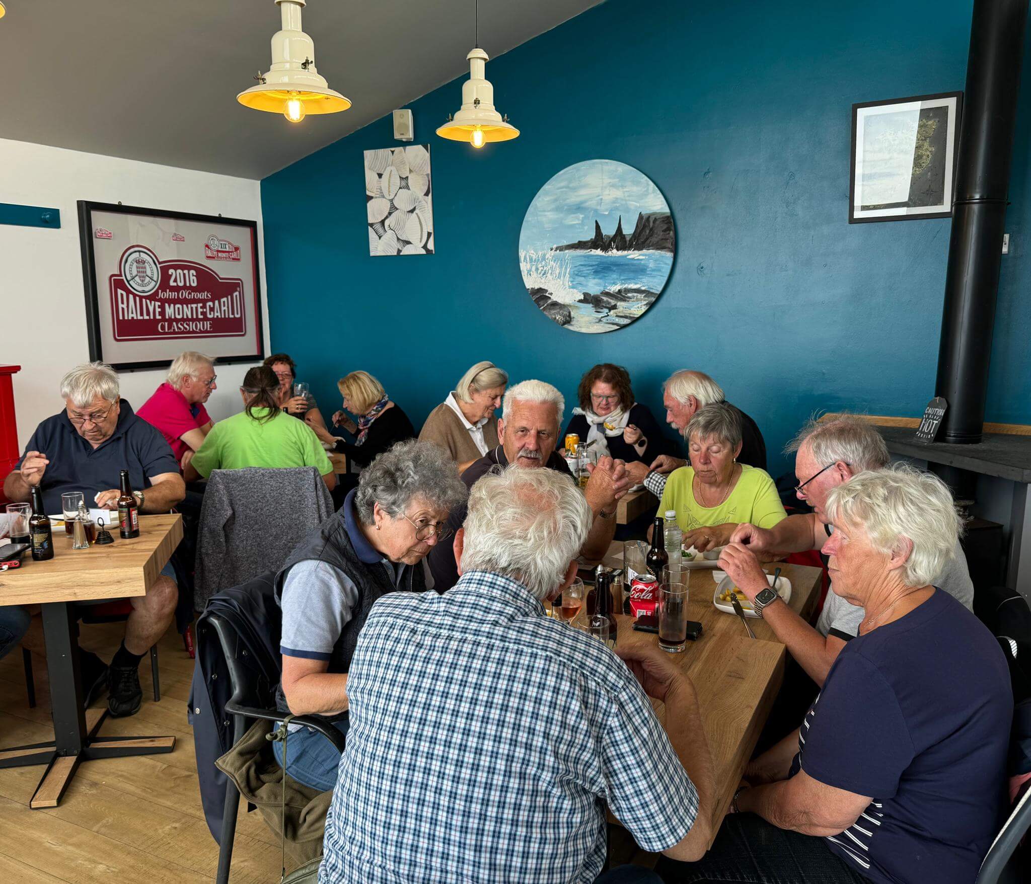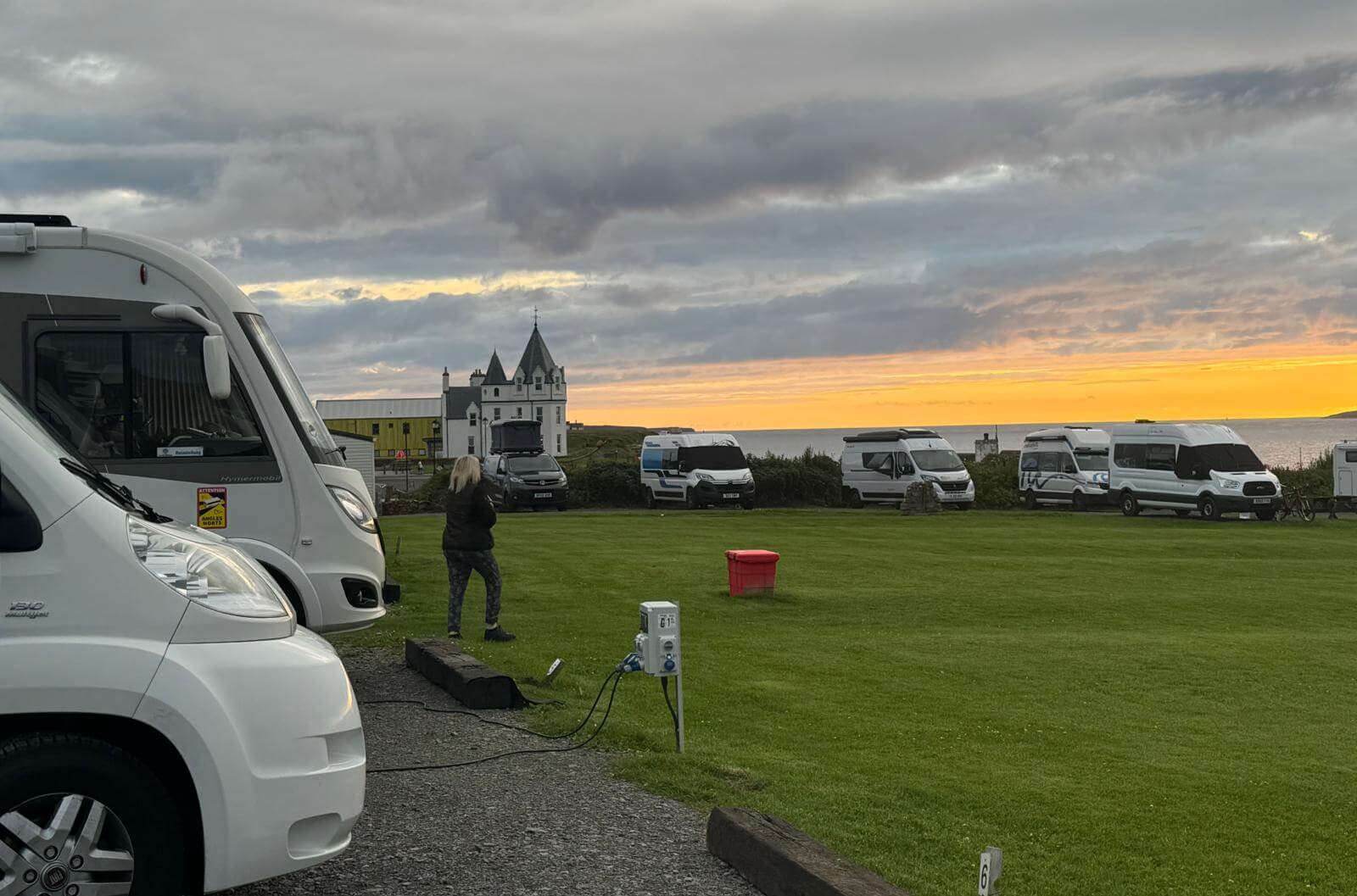 Von Inverness geht es weiter nach Norden – an das Ende von Schottland. Das meinen viele Schotten, aber es gibt noch die Orkney- und Shetland-Inseln. Aber erst mal genießen wir bei sonnigem Wetter die Fahrt in den Highlands. Nach einem Stopp in einer Bäckerei, die an der A9 kurz hinter Inverness gutes Brot anbietet, halten wir an den „Fall of Shins“, einem Wasserfall, in dem Lachse gegen die Strömung zu ihren Brutstätten gelangen wollen. Auf Straßen durch die Highlands, die durch traumhafte Landschaften führen, aber auch eine permanente Konzentration der Fahrer erfordern, geht es weiter zum Schloss Dunrobin, einem Castle direkt an der Nordsee, mit einem aufregendem Garten und einer Falknerei. Der weitere Weg nach Wick führt uns aber auch in einen anderen Teil der schottischen Geschichte – das Clearenc. Im Time Spancenter kann man diese grausame Zeit für die gälischen Einwohner dieser Gegend deutlich nachvollziehen. Dann erreichen wir „First & Last Scotland“. Unser CP befindet sich direkt an der gefährlichsten Verbindung des Atlantik mit der Nordsee – dem Pentland Firth. Der direkte Blick auf den Firth, der mit seinem energiereichen Gezeitenstrom gleichzeitig die Chance für die Sichtung von Orcas bietet, ist bei unserem CP inklusive. Am Abend, nach einem gemeinsamen Dinner in einem Restaurant, versuchen wir trotz der abendlichen Kühle uns mit Gesprächen warmzuhalten. Die früh einsetzende Nachtkälte ist leider erbarmungslos.