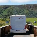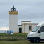 Wir erfahren die schottischen Highlands. Von John o‘Groats geht es weiter westwärts an der schottischen Nordküste entlang des Atlantiks. Kurz hinter unserem CP haben wir einen Halt an einem Leuchtturm, der in Richtung Landesinnere einen unvergesslichen Blick auf das schottische Hochland gewährt. Dieses Lighthouse ist aber auch noch in Betrieb, wie wir von unserem CP in der Nacht feststellen konnten. Weiter geht es durch einmalige Landschaften, häufig über Single Roads, über grüne Berge, durch Moorlandschaften, durchflutet von mäanderförmig verlaufenden Bächen und blühenden Rhododendron. Zwischendurch durchfahren wir kleine Dörfer oder sehen Cottages in grauem Naturstein gebaut. Es gibt auf der Strecke kleine Museen, die über die lokale Geschichte aufklären, aber auch Naturphänomene, wie das Smoo Cave – eine Meeres- und Süßwasserhöhle, die Schmugglern als Versteck gedient haben soll. Am Abend treffen wir uns zur Besprechung des nächsten Fahrtages. Da unsere zuletzt geplante Campertafel zugunsten des Besuches eines Highland Games ausgefallen ist, besprechen wir den zweiten Versuch, der nun wirklich in Glen Coe stattfinden soll. Nach so einem wundervollen Tag genießen alle den schönen Sonnenuntergang.