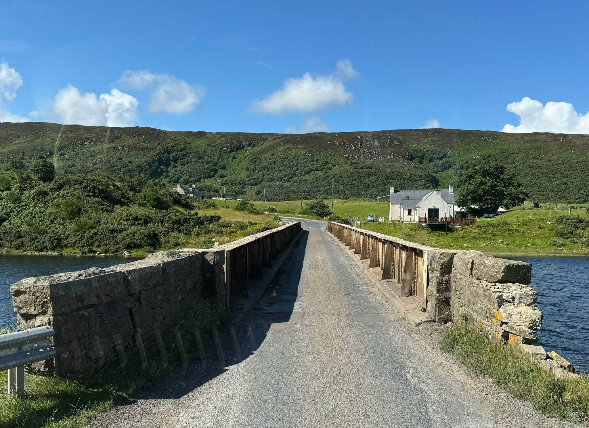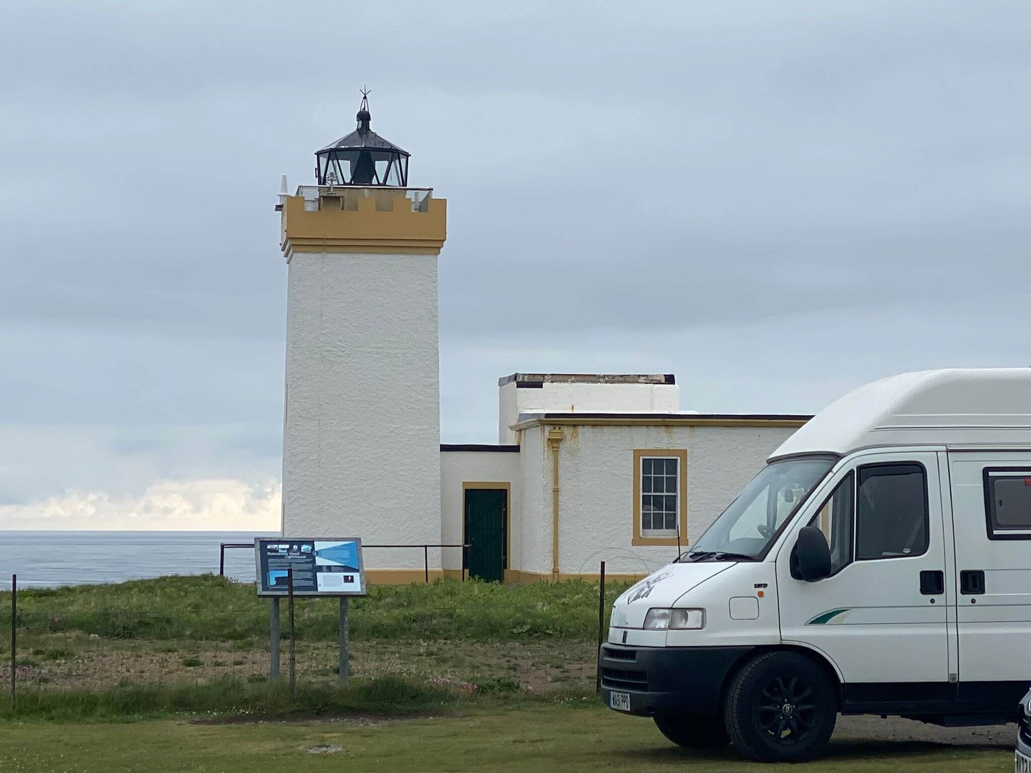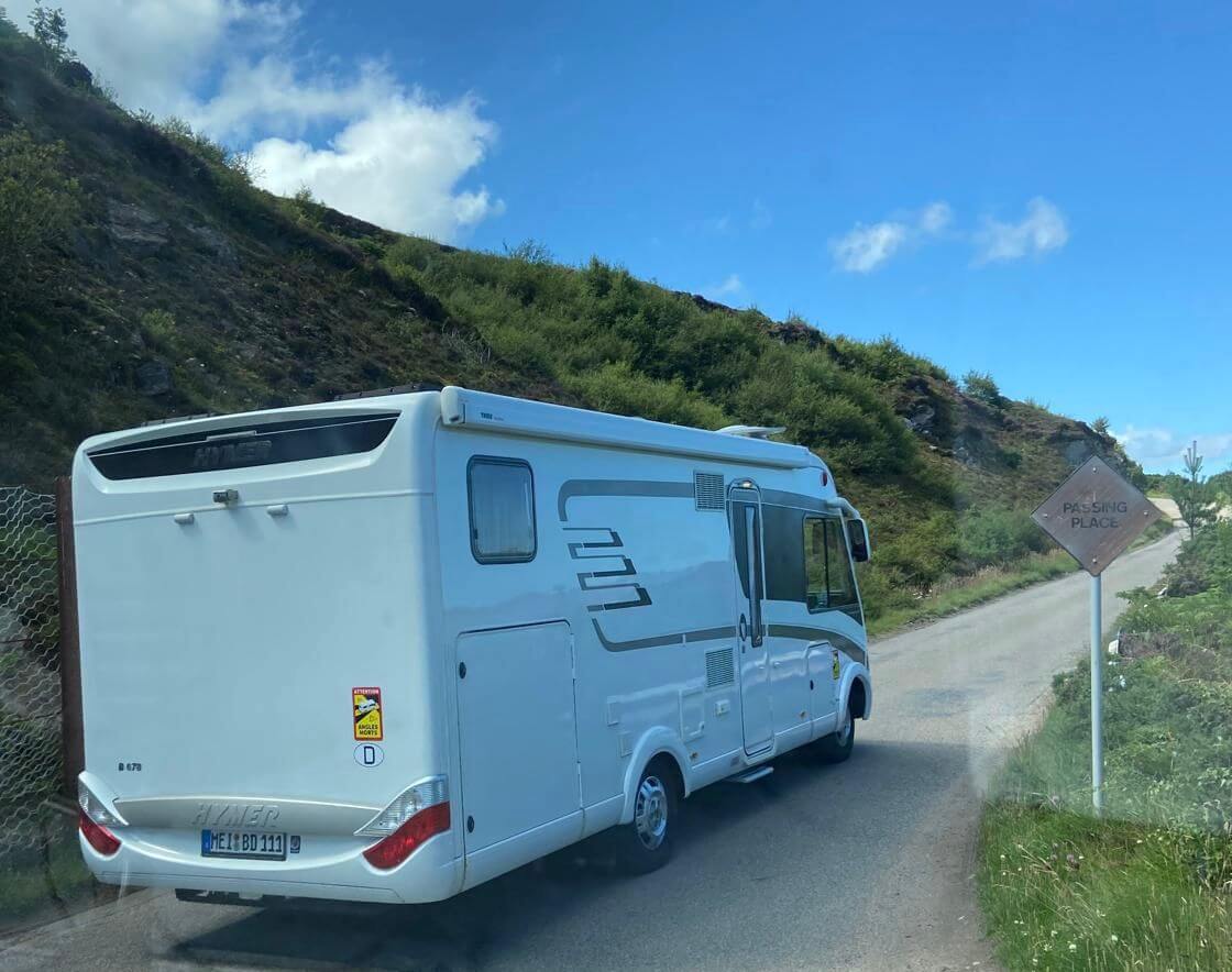 Wir erfahren die schottischen Highlands. Von John o‘Groats geht es weiter westwärts an der schottischen Nordküste entlang des Atlantiks. Kurz hinter unserem CP haben wir einen Halt an einem Leuchtturm, der in Richtung Landesinnere einen unvergesslichen Blick auf das schottische Hochland gewährt. Dieses Lighthouse ist aber auch noch in Betrieb, wie wir von unserem CP in der Nacht feststellen konnten. Weiter geht es durch einmalige Landschaften, häufig über Single Roads, über grüne Berge, durch Moorlandschaften, durchflutet von mäanderförmig verlaufenden Bächen und blühenden Rhododendron. Zwischendurch durchfahren wir kleine Dörfer oder sehen Cottages in grauem Naturstein gebaut. Es gibt auf der Strecke kleine Museen, die über die lokale Geschichte aufklären, aber auch Naturphänomene, wie das Smoo Cave – eine Meeres- und Süßwasserhöhle, die Schmugglern als Versteck gedient haben soll. Am Abend treffen wir uns zur Besprechung des nächsten Fahrtages. Da unsere zuletzt geplante Campertafel zugunsten des Besuches eines Highland Games ausgefallen ist, besprechen wir den zweiten Versuch, der nun wirklich in Glen Coe stattfinden soll. Nach so einem wundervollen Tag genießen alle den schönen Sonnenuntergang.
