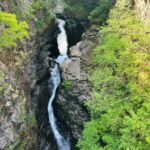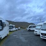 Auf kleinen, schmalen Straßen, zum Teil wieder Single Track Roads wollen wir auf die Isle of Skye. Die Landschaft ist so schön wie in den vergangenen Tagen. Unser erster Stopp ist die Corrieshalloch Schlucht. Wir spazieren zu einer Hängebrücke und weiter zu einer Aussichtsplattform. Von dort und auch von der Brücke schaut man in die Schlucht mit dem Wasserfall. Auf der weiteren, heute mit über 300 km sehr langen, Strecke genießen wir die raue und doch wunderschöne Landschaft der schottischen Highlands. Der Nachmittag bringt etwas Verwirrung in den Tagesablauf, da der avisierte CP uns nicht aufnehmen will. Trotz der mit Wohnmobilen überfüllten Insel gelingt es doch zeitnah, einen Ersatz zu finden, auf dem wir gute Plätze finden. Am Abend regnet es mal wieder kräftig, sodass nach der kurzen Teilnehmerbesprechung unter Schirmen das Wohnmobil zum trockenen Zufluchtsort wird. Das Gute an dem Wetter ist, dass uns die Midges, auf gut deutsch Stechmücken, nicht so peinigen können wie gestern.