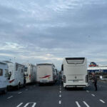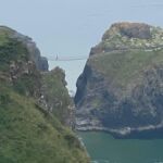 Wegen der Fährfahrt nach Nordirland verlassen wir gegen 5:30 Uhr in der Früh unseren CP. Unser erstes Ziel ist der Fährhafen Cairnryan. Nach gut zwei Stunden über die Irische See erreichen wir Larne in Nordirland. Auf einer fahrerisch anspruchsvollen, aber landschaftlich tollen Küstenstraße, der Causeway Coastal Route, geht es zuerst bei etwas sonnigem Wetter am Meer entlang bis zum ersten interessanten Aussichtspunkt. Schade, dass wir die Hängebrücke „Rope Bridge“ nur von einem Aussichtspunkt oberhalb sehen können. Auf den eigentlichen Parkplatz, um auch selber über die Brücke spazieren zu können, kommen wir wegen einer installierten Höhenbeschränkung mit unseren Wohnmobilen nicht mehr. Weiter geht es vorbei an der unglaublichen UNESCO-Welterbestätte, den Giant’s Causeway. Morgen haben wir einen Ruhetag und werden mit einem Bus zum Besichtigen dieser Lavaausformungen fahren. Der Abend beschert uns wieder britische Verhältnisse mit Kühle und leichten Regenschauern. So ist der Aufenthalt mehr im Womo angesagt. Wir entgehen damit auch den lästigen Midges.