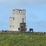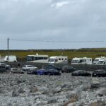 Es geht weiter im Westen Irlands über den „Wild Atlantic Way“ entlang der Küste nach Norden. In Tarbert gibt es auf dem Weg zum Fährhafen ein altes Gefängnis aus dem Jahre 1831 anzusehen. Nach 100 Jahren Dienst für die Verbrechensbekämpfung dient es nun als Museum. Auf einer Autofähre überqueren wir den River Shannon, Irlands längstem Fluss. Dann erreichen wir die Cliffs of Moher, eine Steilküstenlandschaft, die sich bis zu 210 m aus dem Atlantik erhebt. Leider sind wir in der Urlaubssaison Irlands und die Zufahrt zum Parkplatz wird reguliert. Für viele ist deshalb die Zufahrt versperrt. Unser Campingplatz in Doolin Pier liegt direkt am Meer. Unmittelbar am Camp fahren Boote ab, mit denen man direkt zu den Cliffs fahren und eine Besichtigung von der Seeseite machen kann. Aber auch hier verhindert der Wind, dass die Boote auslaufen. Am Abend lohnt sich eine Wanderung zum o’Conner’s Pub, um evtl. ein irisches Dinner zu genießen. Ab 21 Uhr kann man in diesem Pub bei Live-Musik auch begleitet von irischen Trinkliedern das Guinness probieren.