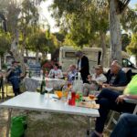 Bei der Abreise in Pompeji hatten wir noch ca. 9 Grad Celsius. Bei der Fahrt hatten wir schneebedeckte Gipfel gesehen, auf unserer Fahrt nach Palmi. Schöne Buchten begleiteten uns auf den Küstenstreifen. Am Abend trafen wir uns bei doch schon sehr warmen Temperaturen zu unserer Tourbesprechung. Voll Freude warteten wir den Sonnenuntergang ab bei Bier, Wein, Aperol und einer guten Brotzeit wie Osterschinken und Käse. Oliven usw. Die Gruppe fühlte sich sichtlich sehr wohl und dann gingen wir zum Strand und bewunderten den Sonnenuntergang. Alle freuen sich auf das Abenteuer Sizilien.