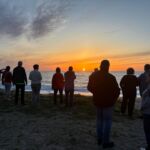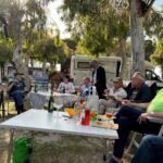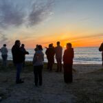 Bei der Abreise in Pompeji hatten wir noch ca. 9 Grad Celsius. Bei der Fahrt hatten wir schneebedeckte Gipfel gesehen, auf unserer Fahrt nach Palmi. Schöne Buchten begleiteten uns auf den Küstenstreifen. Am Abend trafen wir uns bei doch schon sehr warmen Temperaturen zu unserer Tourbesprechung. Voll Freude warteten wir den Sonnenuntergang ab bei Bier, Wein, Aperol und einer guten Brotzeit wie Osterschinken und Käse. Oliven usw. Die Gruppe fühlte sich sichtlich sehr wohl und dann gingen wir zum Strand und bewunderten den Sonnenuntergang. Alle freuen sich auf das Abenteuer Sizilien.