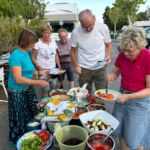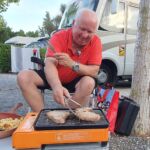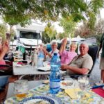 Dann starteten wir, um unsere zweite Campertafel vorzubereiten. Bei dieser Tafel gibt es eine besondere Spezialität. Fangfrischer Thunfisch. Unsere Grillmeister bereiteten diese vorzüglich zu und unsere Damen machten sehr delikate Salate. So konnten wir ein wahrlich festliches Dinner feiern. Alle waren begeistert. Köstliche Getränke wie sizilianische Weine und Liköre und natürlich deutsche Biere schufen eine tolle festliche Stimmung.