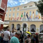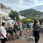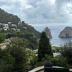 Frühmorgens bei strahlendem Sonnenschein fuhren wir mit dem Bus zum Hafen von Neapel. Dort setzten wir über und als wir den Hafen in Capri erreichten, wurden wir mit einem kräftigen Regenschauer begrüßt.