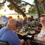 Makarska ist eine schöne Hafenstadt an der dalmatinischen Küste, bekannt auch durch die Strände an der Makarska Riviera. Unsere Fahrt geht vorbei an Split und Trogir, Städte, die wir im weiteren Verlauf der Reise noch gezielt besuchen werden. Wir passieren auch die schöne Stadt Primosten, deren Altstadt nur durch einen Damm mit dem Festland verbunden ist. Hier lohnt ein Stopp für eine Besichtigung oder Mittagspause. Entlang unserer Route werden wir immer wieder mit tollen Ausblicken belohnt. Einige legen auch einen Einkaufsstopp ein, um sich für die bevorstehende Campertafel zu rüsten. Auch Omis durchfahren wir nur, da wir dort demnächst zwei Tage verbringen werden. Am frühen Nachmittag haben dann die meisten Teilnehmer das Camp erreicht und genießen die freie Zeit am Platz oder gehen an den Strand, um eine Runde zu schwimmen. Nach unserer gemeinsamen Besprechung des Folgetages gehen wir alle in eines der vielen Restaurants an der Strandpromenade zum Abendessen.