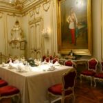 Die Sissi bevorzugte doch eher die hellere Einrichtung. Wir kommen in die Gemächer von Maria Theresia und erfahren, dass nach der Schlacht von Soliferno von den Habsburgern das rote Kreuz gegründet wurde. „…ja die Toten waren tot, aber die verletzten brauchten Hilfe“.