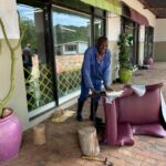 Nach fünf spannenden Tagen im Kruger NP wollen wir zum Hlane NP. Dieser liegt in eSwatini – früher Swasiland. Beim Verlassen des Krüger sehen wir zum Abschied noch einige Krokodile. Die Aus- und Einreise an der Grenze von Südafrika nach eSwatini verläuft problemlos. Fahrtechnisch heißt es jedoch in eSwatini dauerhaft auf der Hut zu sein. Einmal wegen der meist unangekündigten Bumper und zum anderen wegen der vielen Löcher auf den Straßen. Man spürt es also direkt, dass man von einem reichen Land in eines der ärmsten Länder Afrikas gewechselt ist. Auf dem Weg zum NP gibt es einige interessante Stopps, u. a. im Peak Kraft Centre. Hier haben sich Frauen in einer Kooperative zusammengeschlossen und verkaufen in Handarbeit hergestellte wunderbare Kunstgewerbeartikel. Nach Mbabane, der Hauptstadt eSwatinis folgt Manzini, das wirtschaftliche Zentrum des Landes. Bei der Fahrt durch eine der Haupteinkaufsstraßen der Stadt kann man trotz der Armut des Landes ein pulsierendes Leben ähnlich einer europäischen Mittelstadt beobachten. Wir fahren weiter auf einer kilometerlangen Autobahn, die die Hauptstadt mit dem einzigen Airport des Landes verbindet. Im Hlane NP ist dann einiges anders als im Kruger NP. Im Camp gibt es keinen Strom, dafür Natur pur. Unmittelbar vor dem Restaurant des kleinen Zentrums befindet sich ein großes Wasserloch – am frühen Nachmittag voller Rhinos. Wer möchte, setzt sich auf die Terrasse und genießt bei einem Kaffee eine unvergessliche Aussicht. Am Abend schmeckt uns das schmackhafte Dinner vom Büfett des Restaurants. Da kann man auch mal Impala kosten. Danach sehen wir am Lagerfeuer, wie in eSwatini nach den Tagesmühen gefeiert wird.