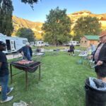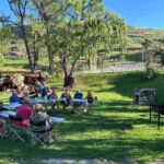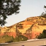 Bevor die Womo’s aus dem Camp rollen, wird einer von seinen Bergsteigergenen auf einen Gipfel der Drakensberge getrieben. Die Aussicht auf das Amphitheater mit einer der beeindruckendsten Felswände der Erde war die grandiose Belohnung. Nach Verlassen des Camps drehen auch alle anderen eine Runde im Royal Natal NP, um dieses Amphitheater zu bestaunen. Nicht nur für Schweizer bietet sich anschließend ein Frühstück in der Lodge „Little Switzerland“ an – eine Hotelanlage, die von Schweizern betrieben wird. Nach Überquerung des Olivershoek Passes in 1.741 m führt uns eine gewundene Bergstraße zur Witsieshoek Lodge am Fuße des prächtigen Sentinel Peak. Auf 2.220 m über dem Meeresspiegel bietet die Lodge grandiose Ausblicke in die nördlichen Drakensberge. Nach diesem „Höhenflug“ fahren wir in den Golden Gate National Park. Mit seinen malerischen Felslandschaften beeindruckt der NP seine Besucher stets aufs Neue. Mitten im NP liegt unser Camp. Nach der Teilnehmerbesprechung unserer morgigen Fahrt über das Königreich Lesotho nach Bloemfontein gibt es eine zünftige Grillparty. Trotz der abendlichen Kühle auf fast 2.000 m Höhe sitzen wir wieder bis in die späten Stunden am Lagerfeuer.