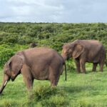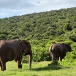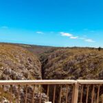 In der Nacht hat es geregnet. Nicht soviel, dass unsere Womo’s vom Staub befreit wurden, aber sicher gut für die hiesige Natur. Nieselwetter erwartete uns am Morgen, was nicht besonders dazu einlädt, die Tagestour zum Tsitsikamma NP nochmals mit einer Schleichfahrt durch den Addo zu beginnen. Alle nutzen aber trotz des ungemütlichen Wetters die Chance, noch Fotos im Park zu schießen. Danach geht es über die N2 um Port Elizabeth herum, mit einigen Abstechermöglichkeiten in Richtung Georg. Die erste Möglichkeit ist Jeffrey‘s Bay. Leider hat sich das Wetter nur geringfügig mit Sonne angereichert. Deshalb bietet es sich an, nach dem Einkauf im gut sortierten Spar einen schnellen Blick auf die Surfer im Indischen Ozean zu werfen. Der nächste Abstecher führt zur St. Francis Bay. Dort kann man den höchsten Leuchtturm Südafrikas besichtigen. Dann fahren wir über den Storms River. Dahinter parkt man, um die spektakuläre Brücke und die tiefe Schlucht zu bestaunen, die der Storms in den Felsen geschnitten hat. Die Brücke, die 1956 erbaut wurde, führt in 139 m Höhe über den Storms River. Von jetzt an fahren wir auf der Garden Route. Diese Route liegt im gleichnamigen Distrikt und erstreckt sich von der Mossel Bay im Westkap bis eben an den Storms River im Ostkap. Kurz vor Erreichen unseres Camps bietet sich noch einmal ein Abstecher zum ältesten Baum Südafrikas an. Der rund 800 Jahre alte Yellowwoodbaum (breitblättrige Steineibe) ist 37 m hoch und hat einen Umfang von 8,5 m. Mit dem Erreichen des Tsitsikamma NP erreichen wir auch unseren einzigartigen Campingplatz. Direkt am Indischen Ozean gelegen, mit tiefen Schluchten und tosender Brandung an der Küste, können wir die Natur hautnah erleben. Nach dem teilweise gemeinsamen Abendessen genießen wir dann etwas eingemummelt das Geräusch der Brandung bei einem Gläschen und angenehmen Gesprächen vor den Womos.