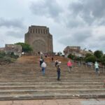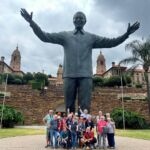 Nach dem Frühstück erwarten uns der Chef unserer Womoverleihfirma und unser Mechaniker, der uns auf der Reise begleiten wird, um mit uns den „Papierkram“ für die Fahrzeugvermietung zu erledigen und eine erste Einweisung in die Fahrzeugnutzung zu geben. Danach fuhren wir zur Stadtbesichtigung nach Pretoria. Schon auf der Hinfahrt erfuhren wir interessante Fakten zur Geschichte Südafrikas von unserem Stadtführer. Insbesondere auch zu den Auseinandersetzungen der Buren mit den Engländern. Nach der Rundfahrt in Prätoria, einer der drei Hauptstädte Südafrikas, besuchten wir das Union Buildings, den Regierungssitz vom Juli bis Dezember. Ein Gruppenfoto vor der Mandela-Statue ist Pflicht des Besuchs. Auf unserem Programm stand als nächster Punkt auch der Besuch des Voortrekker-Monuments, dessen Architekt bei der Gestaltung des Leipziger Völkerschlachtdenkmals wohl im Kopf gehabt haben muss. Danach haben wir leckeren Lunch gekostet. In Südafrika trifft man immer wieder auch auf die holländische Küche. Am Nachmittag erkundeten wir in einer Museumsanlage die afrikanischen Wurzeln Südafrikas. Bei einem Rundgang konnten wir uns das dörfliche Leben von fünf ethnischen Gruppen des schwarzen Südafrikas ansehen. Dazu gehört natürlich auch, etwas über das Feiern und das Essen zu erfahren, was wir hautnah und schmackhaft genießen konnten. Für alle war dieser erste intensive Kontakt mit dem Land und seiner Geschichte ein wichtiger Teil des Besuchs eines afrikanischen Landes. Das konnten wir am späten Abend nach unserer Rückkehr in die Safari Lodge in der Bar währen unserer ersten Teilnehmerbesprechung zum morgigen Tag ausgiebig erörtern. Morgen übernehmen wir die Wohnmobile. Auf den Verlauf des ersten Fahrtags sind alle gespannt.