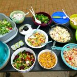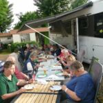 … der Regen verzieht sich und wir genießen einen gemütlichen Abend bei einer gemütlichen Campertafel. Fleißige Hände haben ein abwechslungsreiches Salatbuffet zusammengestellt…