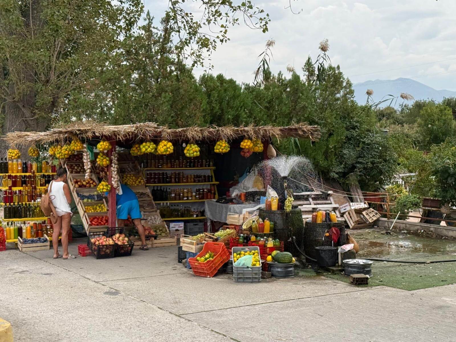 Vor der Grenze reihten sich am Straßenrand zahlreiche Verkaufsstände aneinander. Angeboten wurden Honig, Slibowitz und frisches Obst. Besonders auffällig waren die vielen Mandarinen, die gerade Saison haben – ganze Plantagen leuchteten direkt neben der Straße in kräftigem Orange.