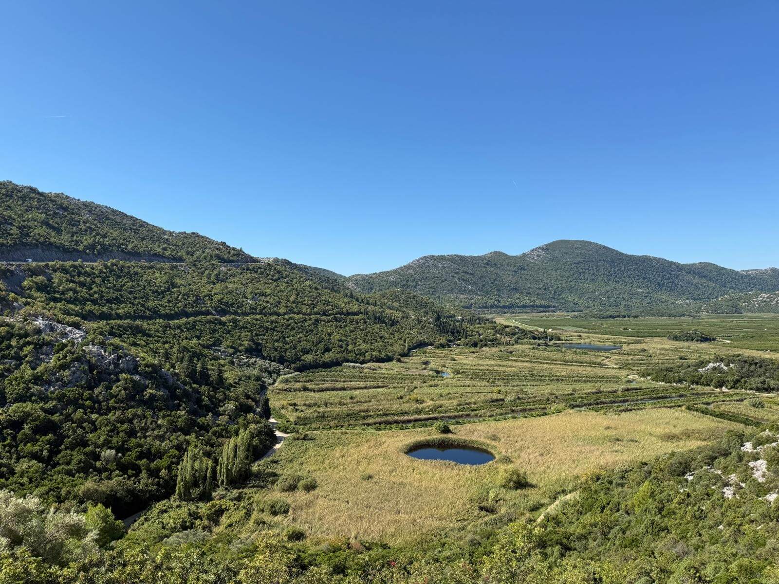 Heute hieß es Abschied nehmen von Bosnien-Herzegowina. Nach einer kurzen Fahrt erreichten wir die Grenze und setzten unsere Route in Richtung Dubrovnik fort. Doch etwa 50 Kilometer vor der berühmten Stadt bogen wir ab – auf die langgestreckte Halbinsel Pelješac, die auch als „Insel der Kapitäne“ bekannt ist. Unterwegs passierten wir das fruchtbare Neretva-Delta, ein wichtiges Anbaugebiet für Mandarinen, Zitrusfrüchte und Gemüse. Verkaufsstände am Straßenrand boten frisch geerntete Früchte und regionale Spezialitäten an – ein lebendiges Bild dalmatinischer Landwirtschaft.