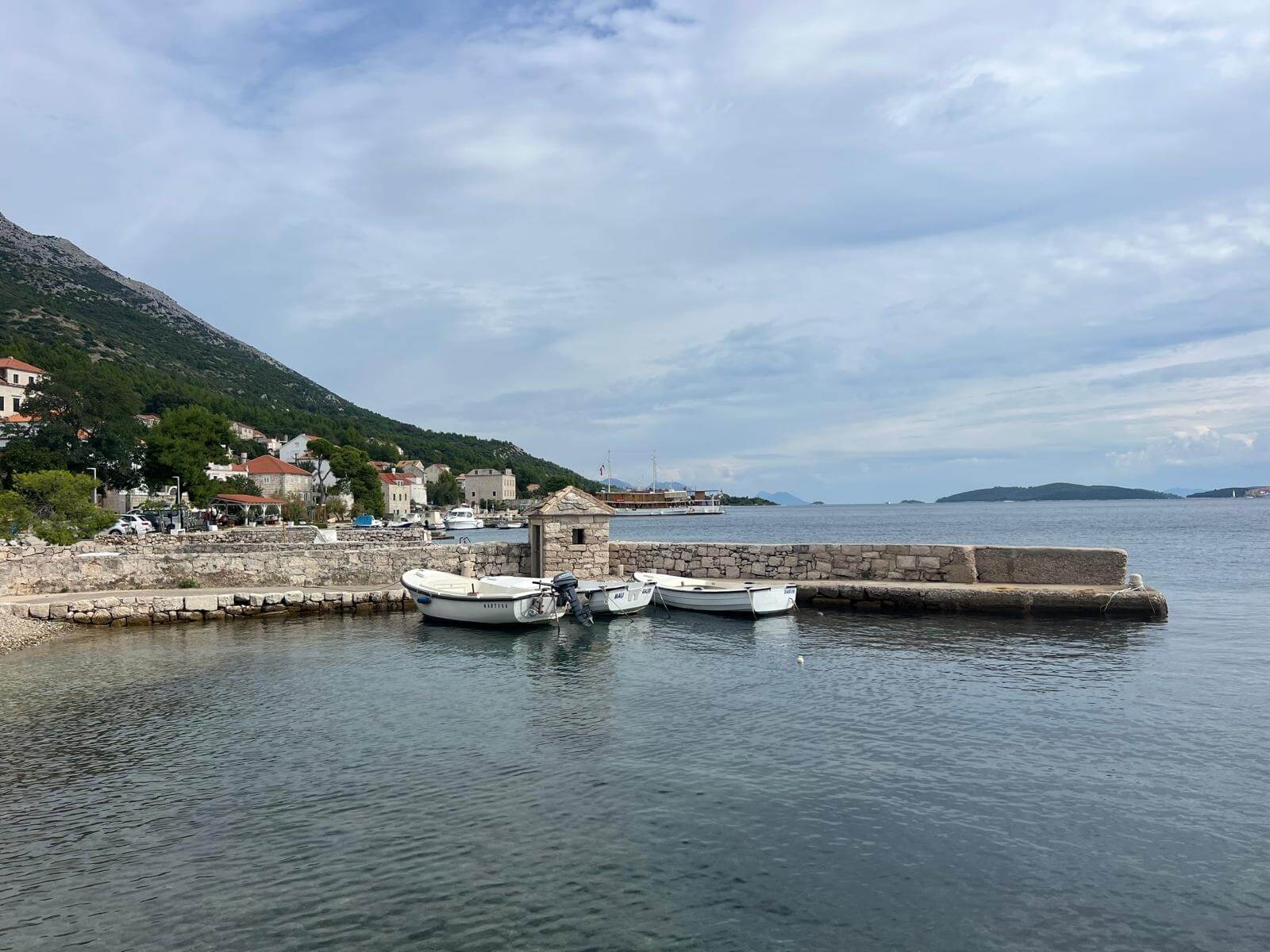 Nach den letzten Fahr- und Besichtigungstagen stand uns heute die Wahl frei: Erholung pur am Campingplatz oder ein Ausflug zum „Insel-Juwel“ Korčula. Während es gestern noch sommerlich warm war und wir dankbar den Schatten suchten, überraschte uns der heutige Morgen mit ganz anderen Bedingungen: Es war kühl und die typische Fallwindströmung der Adria, die „Bora“, fegte kräftig über die Halbinsel. Einige aus unserer Gruppe entschieden sich für die Bootsfahrt hinüber nach Korčula-Stadt, die nicht ohne Grund als eine der schönsten mittelalterlichen Städte der Adria gilt. Mit ihren engen Gassen, den Stadtmauern und der markanten Kathedrale St. Markus erinnert sie an eine kleine Schwester von Dubrovnik. Zudem gilt Korčula als Geburtsort von Marco Polo, dessen Name hier allgegenwärtig ist. Andere blieben auf dem Campingplatz, nutzten den Tag zur Entspannung, erkundeten die Umgebung oder spazierten hinauf zum nahegelegenen Leuchtturm, der einen weiten Blick über die glitzernde Adria bietet.