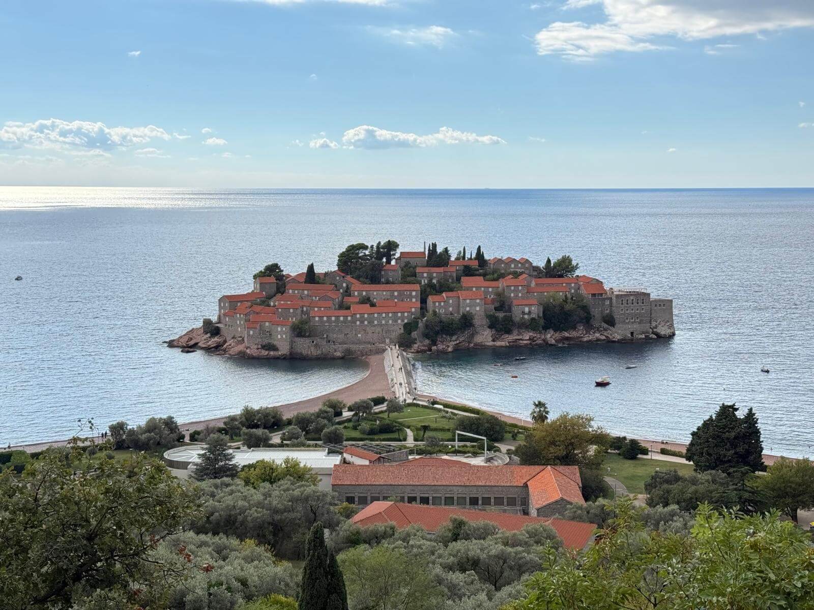 An dem bekannten Fotopunkt bei Sveti Stefan machten wir Halt. Die malerisch auf einer kleinen Insel gelegene ehemalige Festung ist heute ein Luxushotel – ein klassisches Postkartenmotiv Montenegros.