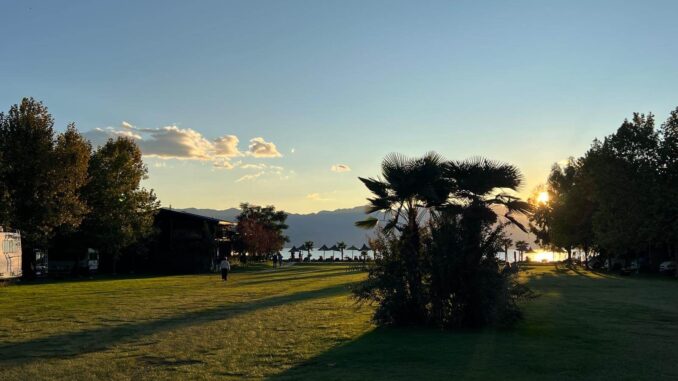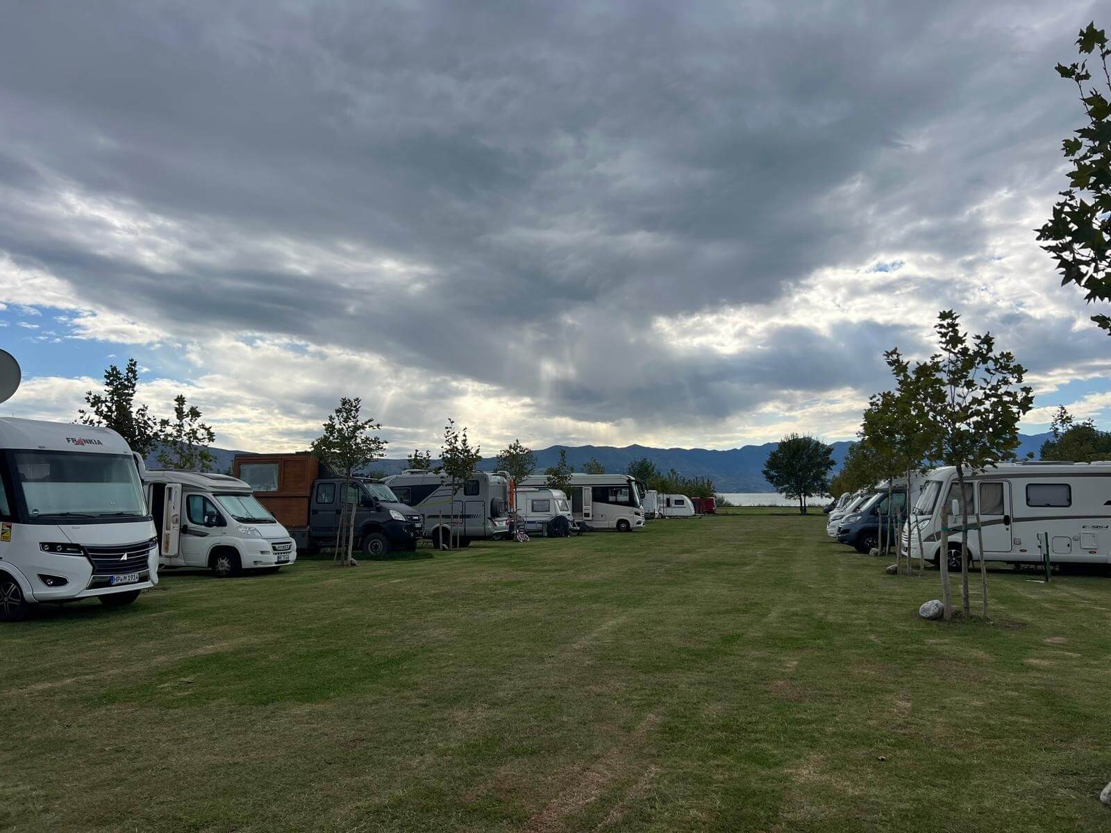 In der Nacht und bis in die Morgenstunden hinein regnete es kräftig. Wir ließen es daher gemütlich angehen, schliefen etwas länger und freuten uns später über die ersten Sonnenstrahlen, die sich ihren Weg durch den dunklen Himmel bahnten. Doch das Wetter blieb wechselhaft – immer wieder zogen Regenfronten durch, mal stärker, mal schwächer. Viele nutzten den freien Tag ganz nach ihren Wünschen: Einige reinigten ihr Wohnmobil, andere ruhten sich aus oder unternahmen Spaziergänge entlang des Sees und in der Umgebung.