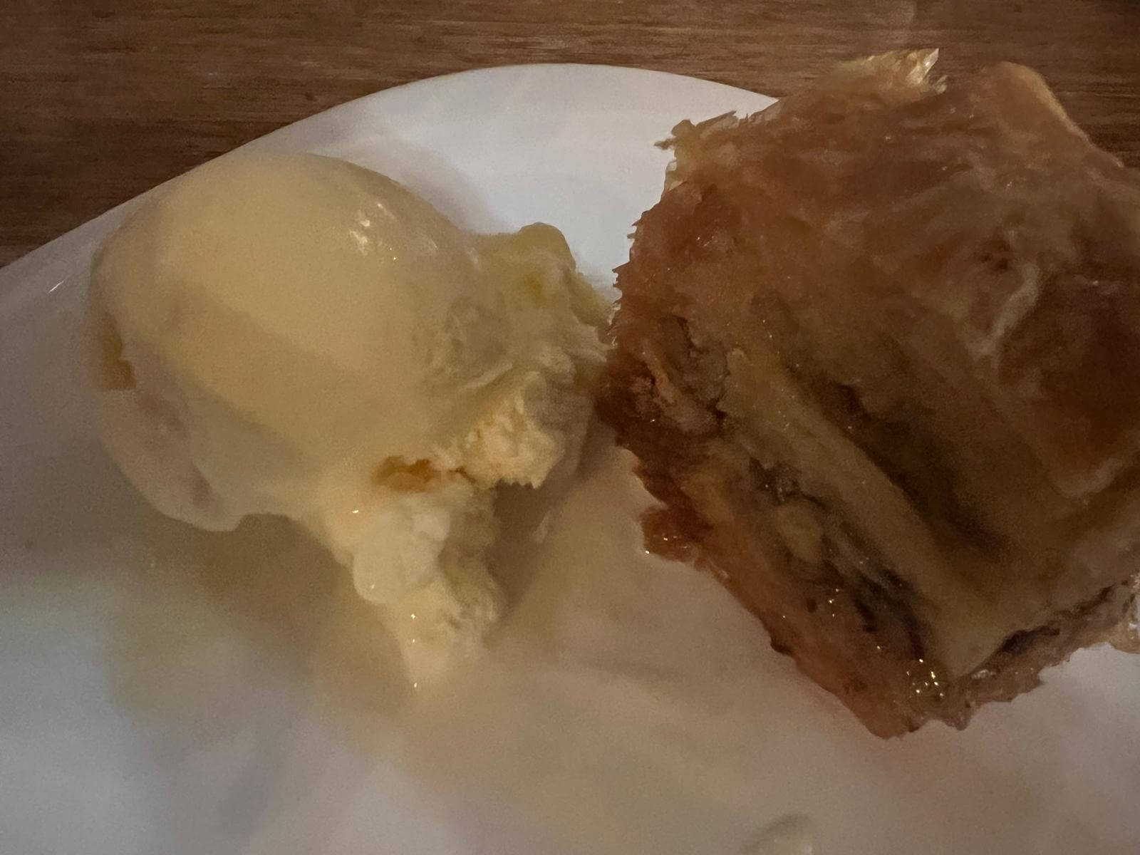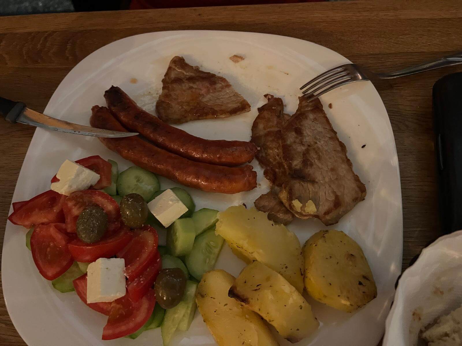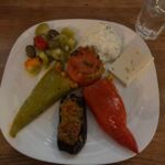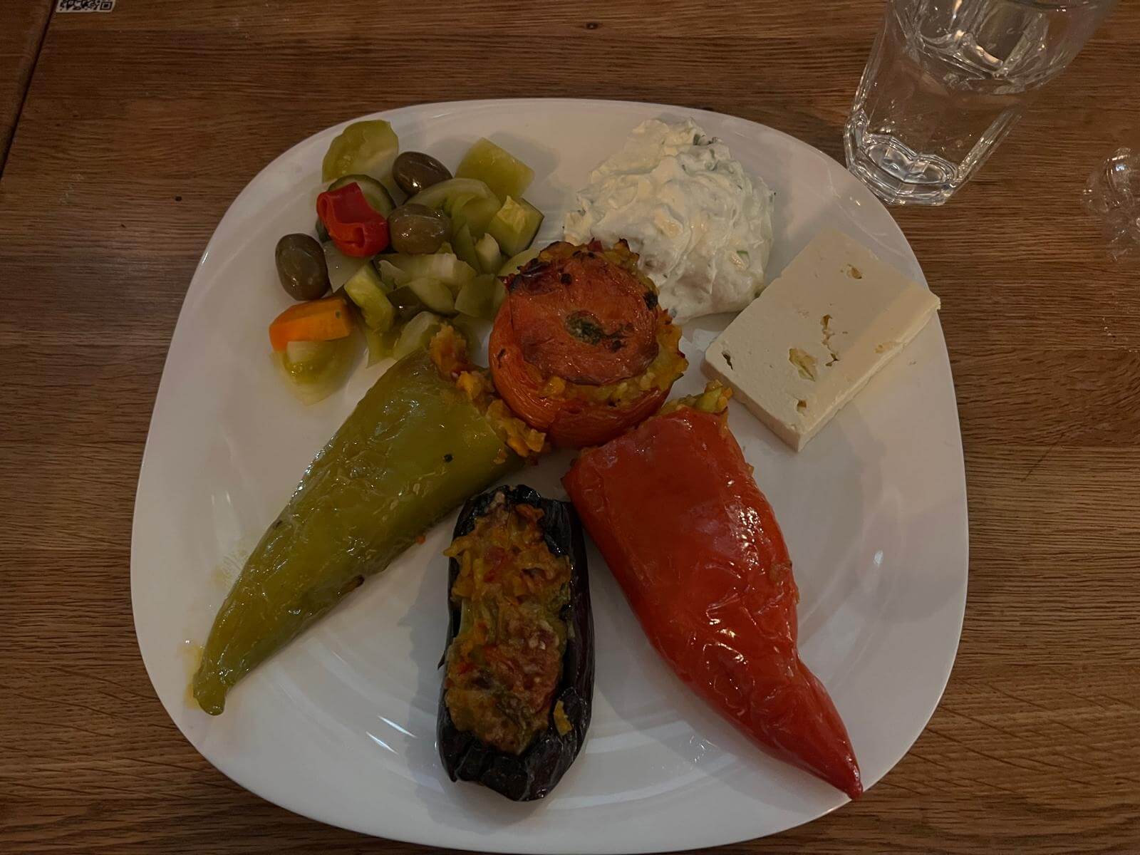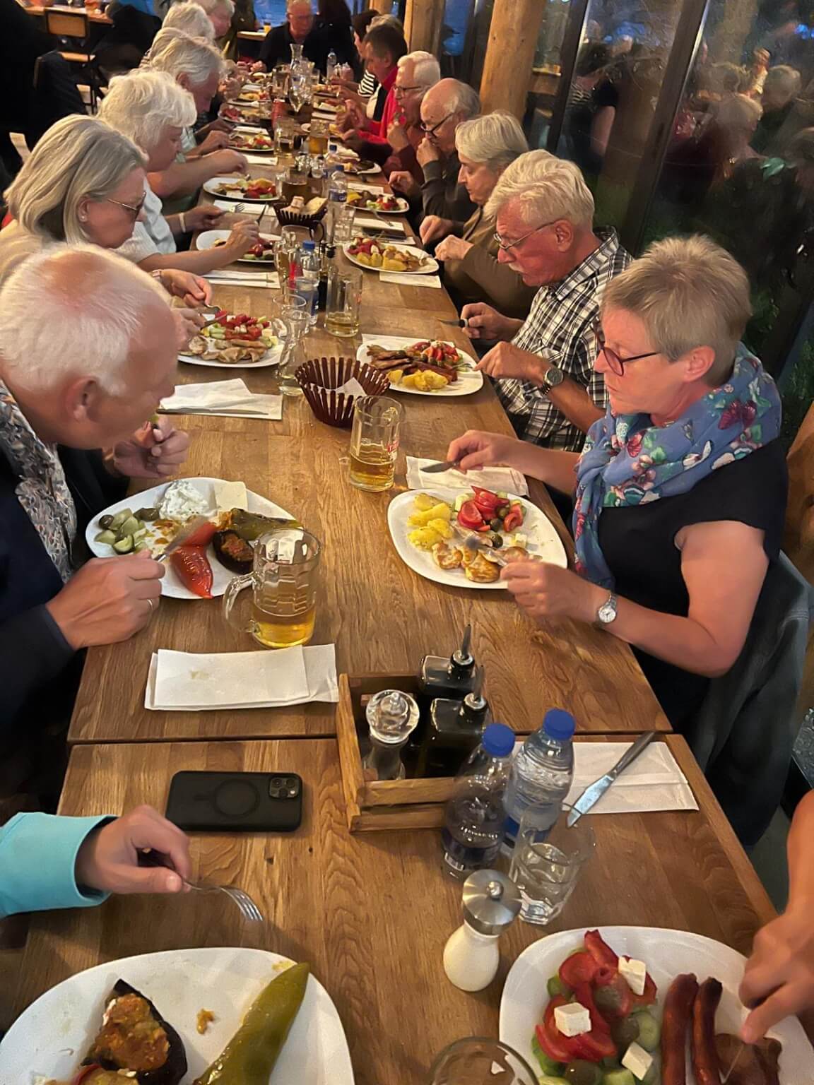 Anschließend gingen wir gemeinsam ins Restaurant, wo wir mit einer Gemüsesuppe und anschließend wahlweise gefülltem Gemüse, gemischtem Schweinefleisch oder Hähnchenfilet mit Beilagen und zum Abschluss Baklava mit Eis verwöhnt wurden. Zum krönenden Abschluss durfte ein Raki natürlich nicht fehlen.