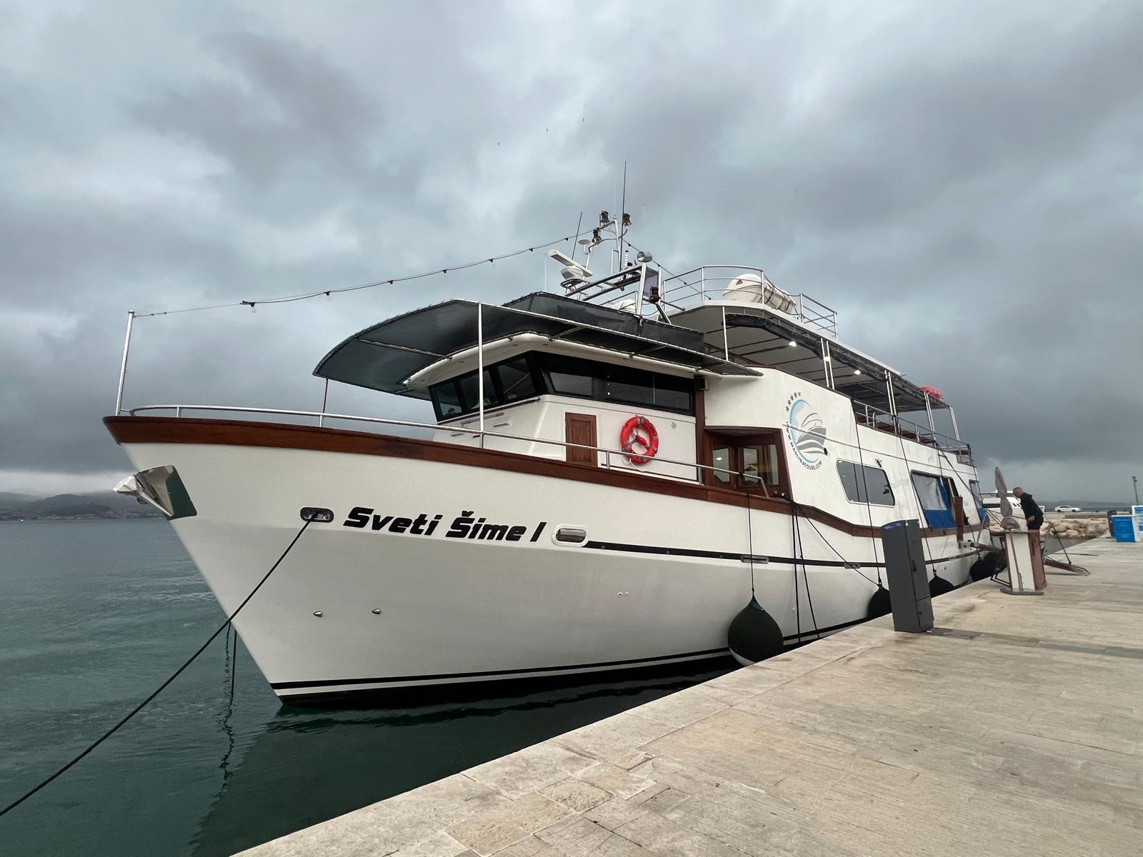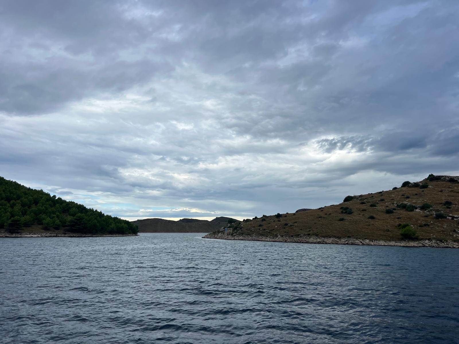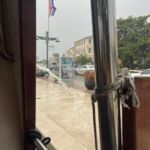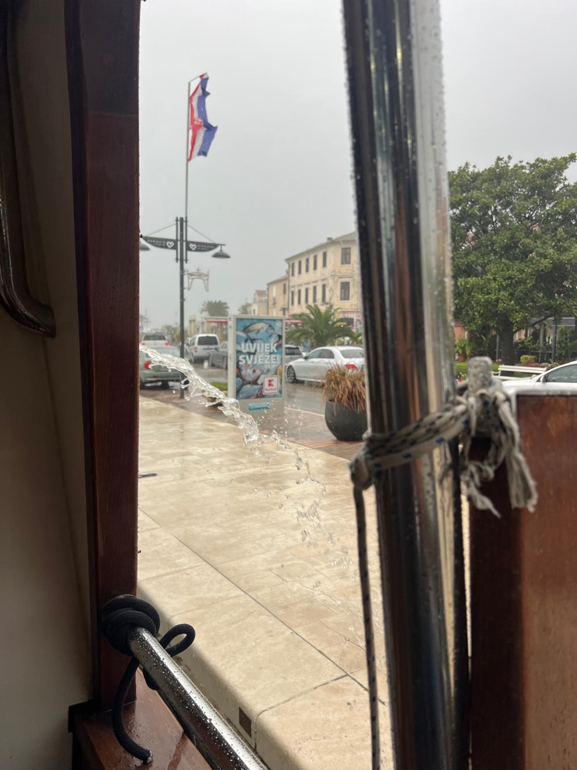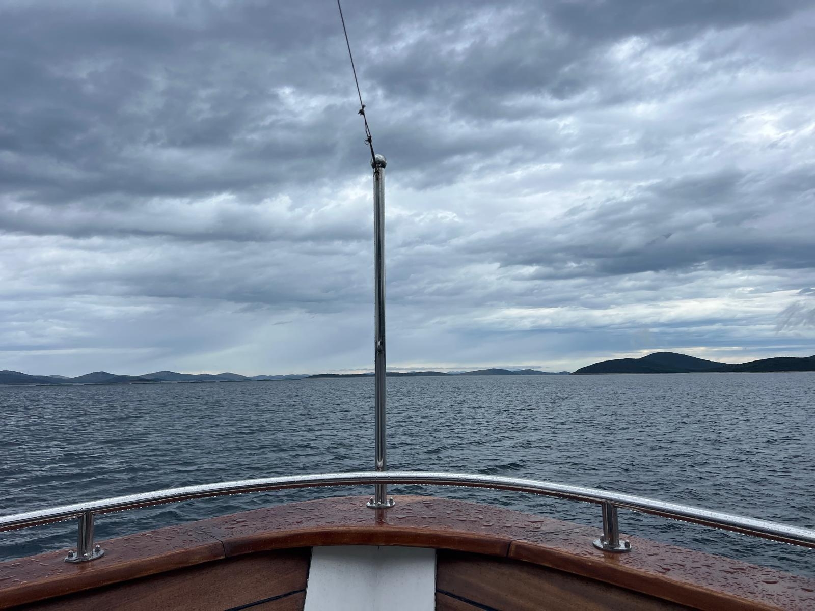 Bereits am Abend zuvor hatten wir arge Bedenken, dass der Ausflug ins Wasser fallen könnte. Für den Morgen war Regen angekündigt. Zum Glück hatte unser Kapitän das Okay gegeben – und dazu noch für ein Upgrade auf ein größeres Schiff gesorgt. Tatsächlich kam es bei der Anfahrt zum Hafen nach Novigrad schlimmer als gedacht: Sintflutartige Regenfälle setzten ein, Straßen waren teilweise nicht mehr befahrbar. Ein Teil unserer Gruppe musste sogar über einen Feldweg zum Hafen gebracht werden, während andere bereits auf dem Schiff warteten.