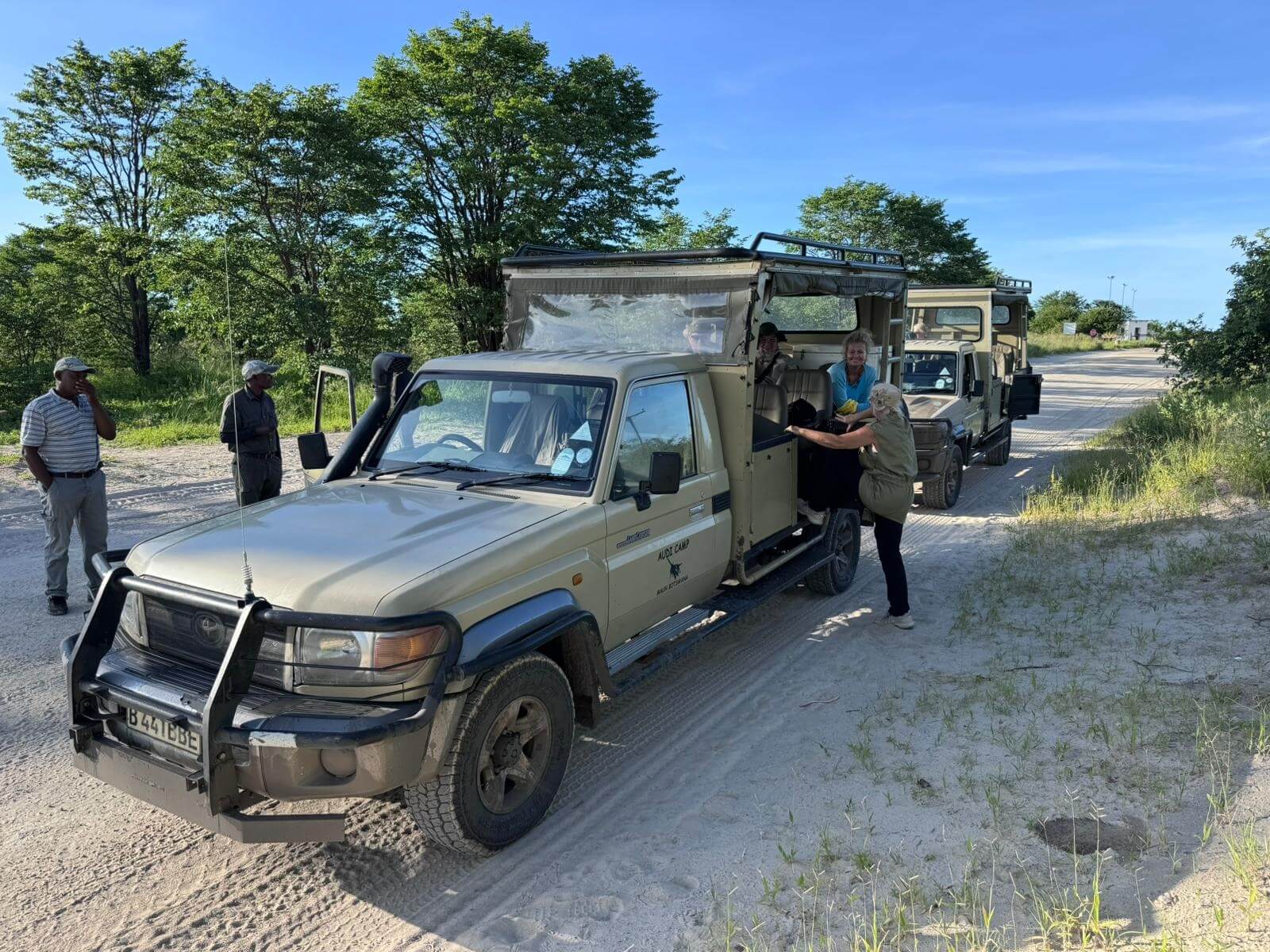 Unser nächstes Ziel ist das Okawango-Delta. Wir fahren nach Maun, dem Tor zum Delta des Okawango. Der Höhepunkt dieses Tags ist für viele der Rundflug über das Delta. Wir haben zu diesem Zweck ein Flugzeug bei Mack Air gebucht. Die „Flieger“ treffen sich am Flughafen und werden schon mal vom Piloten persönlich begrüßt. Nach den üblichen Check-in-Formalitäten fliegen alle 45 Min. über diese einmalige Landschaft. Im Audi-Camp in Maun wird dieses Erlebnis das Thema der abendlichen Runden vor den Womos. Bettruhe ist aber zeitiger angesagt. Morgen geht es ab 5:45 Uhr auf eine Jeep-Safari.