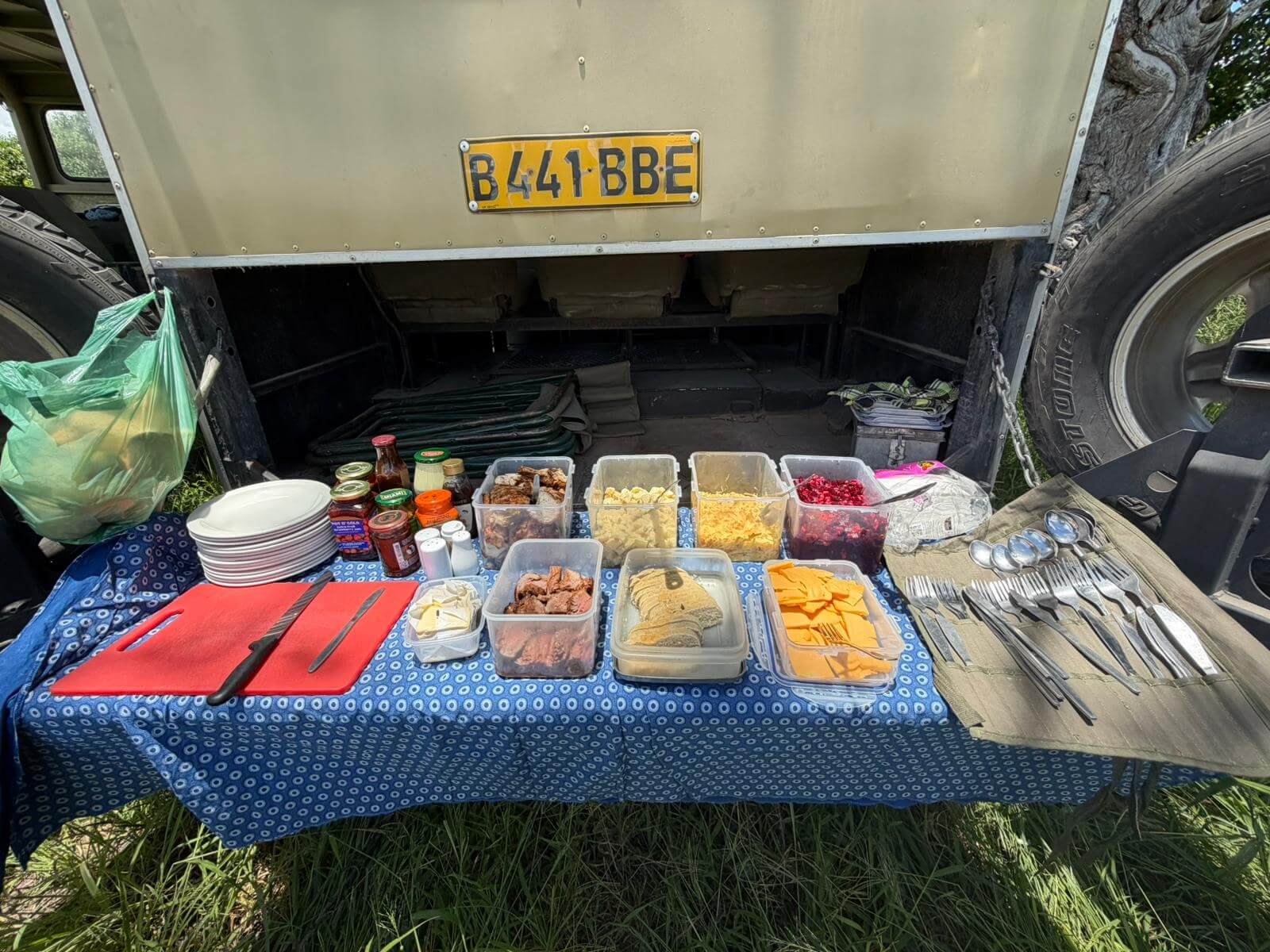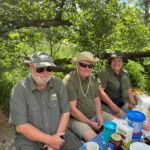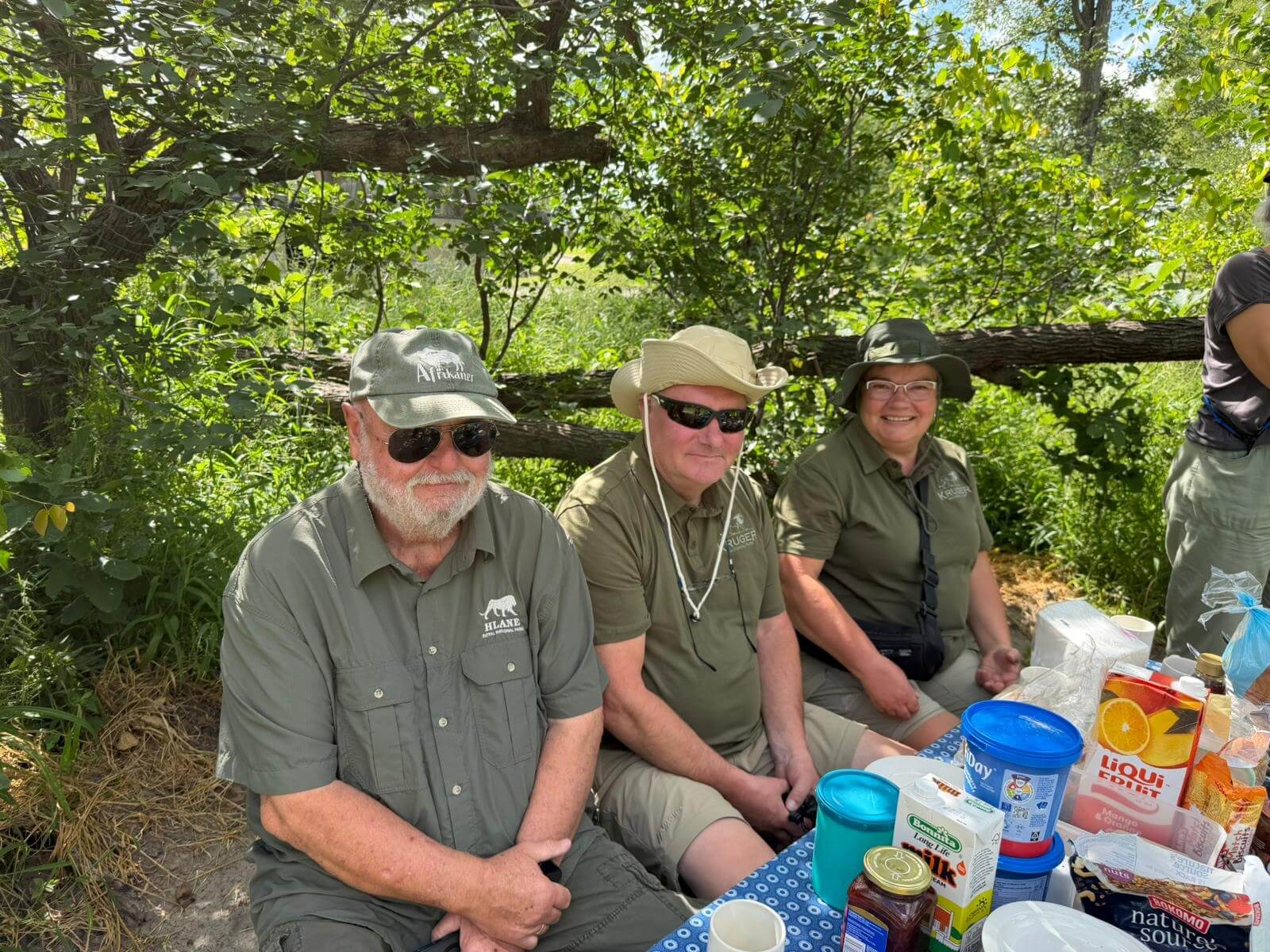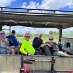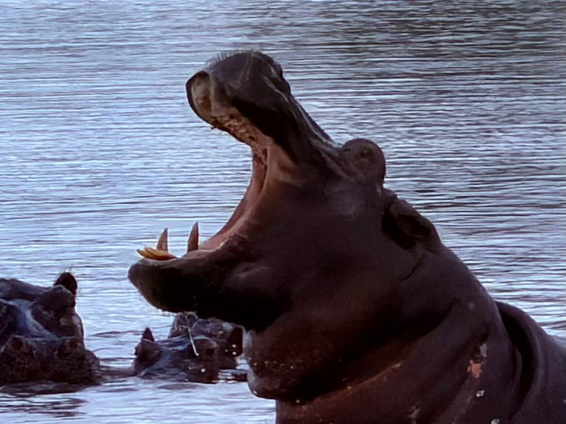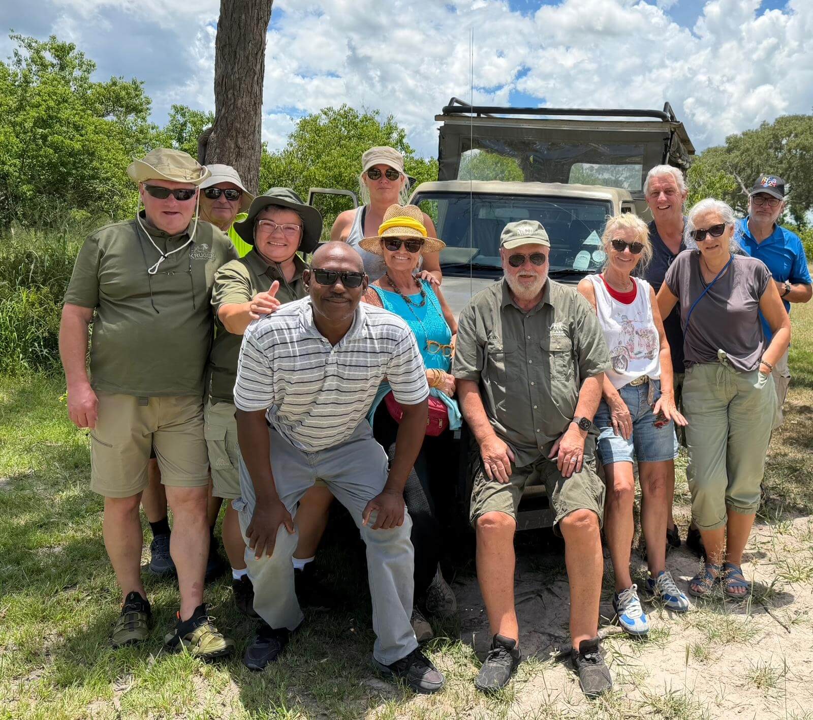 Heute lassen sich alle fahren. Am frühen Morgen geht’s mit Jeeps ins Okavango-Delta. Schon auf dem Weg zum Moremi N.P. laufen uns viele Tiere vor die Linse. Am Eingang des Parks gibt es erst mal ein kräftiges Frühstück. Dann geht es auf Pirschfahrt. Wir sehen wieder viele Tiere in freier Wildbahn, nur mit den Löwen will es nicht so richtig klappen. Wir machen erst mal ein Picknick mitten im Wald. Aber am Ende des Ausflugs auf unserem Heimweg finden wir noch einmal die Wildhunde, die als Ersatz am Wegrand auf uns gewartet haben. Die Freude ist groß und die Auslöser der Kameras klicken ununterbrochen. Nachdem wir am Morgen den Sonnenaufgang erlebt haben, begleitet uns auf dem Weg ins Camp der Sonnenuntergang. Diesen Tag werden alle sicher lange in guter Erinnerung behalten. Die Bar ist für den abendlichen Plausch daher ein guter Ort.
