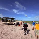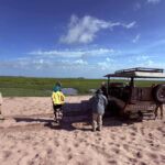 Unser Safaritag beginnt wieder am frühen Morgen. Nicht ganz pünktlich kommt unser Jeep. Aber wir haben einen ausgezeichneten Kenner des Nationalparks, der uns viel berichten kann und auch die versteckten Löwen findet. Im Besteigen der Fahrzeuge sind wir zwischenzeitlich gut geübt. Auf der Fahrt entlang des Chobe gibt es viele Tiere auch in großen Herden zu sehen. Interessant sind natürlich die Flusspferde, viele Vögel und natürlich Löwen. Am Nachmittag geht es dann auf dem Chobe auf Fotosafari. Auch hier sind es die Hippos, die die Kameras auf sich lenken. Wir sehen aber auch Krokodile aus nächster Nähe. Zur Tierbeobachtung war dieser Tag sehr erfolgreich. Abends nutzen wir unseren Van, um einen Abstecher zur nahegelegenen Safari Lodge zu unternehmen. Dort genießen wir ein Büfett mit riesiger Auswahl und leckeren Speisen, die keinen Wunsch offenlassen.