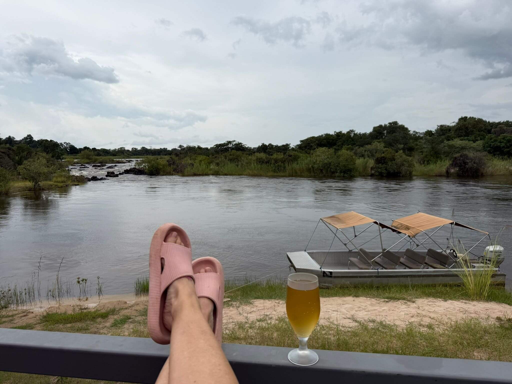 Wir fahren heute durch den Caprivizipfel – eine Landenge von Namibia zwischen Angola und Botswana – benannt nach dem deutschen Reichskanzler Leo von Caprivi. Auf einer fast schnurgeraden Straße durch den Zipfel geht es weiter zu den Popa Falls, unserem nächsten Camp. Es gibt einige Kontrollstationen, die wir problemlos absolvieren. Wir durchfahren den ärmsten Teil Namibias. Man spürt es deutlich, wenn man die einfachen Rundhütten am Straßenrand sieht. Trotzdem sind die Menschen freundlich und winken uns zu. Am Abend haben wir im Restaurant ein gemeinsames Abendessen. Obwohl wir uns im ärmsten Teil Namibias befinden, hat sich die Küche viel Mühe gegeben, uns ein schmackhaftes Dinner zu servieren. Die Meisten probieren ein Kudu-Steak. Morgen gibt es schon wieder einen Ruhetag. Deshalb konnten alle den ausklingenden Tag im Restaurant in fröhlicher Runde genießen.