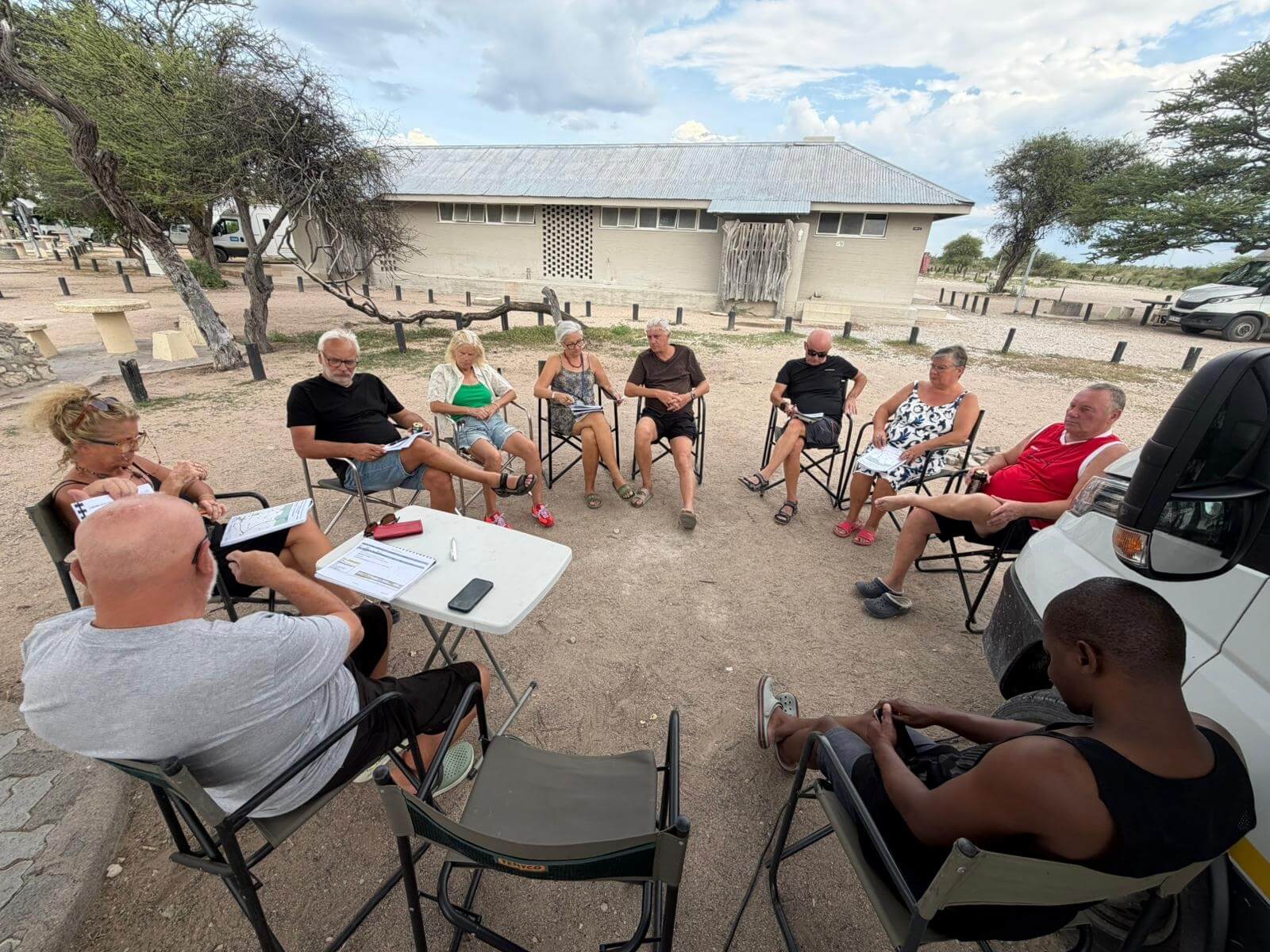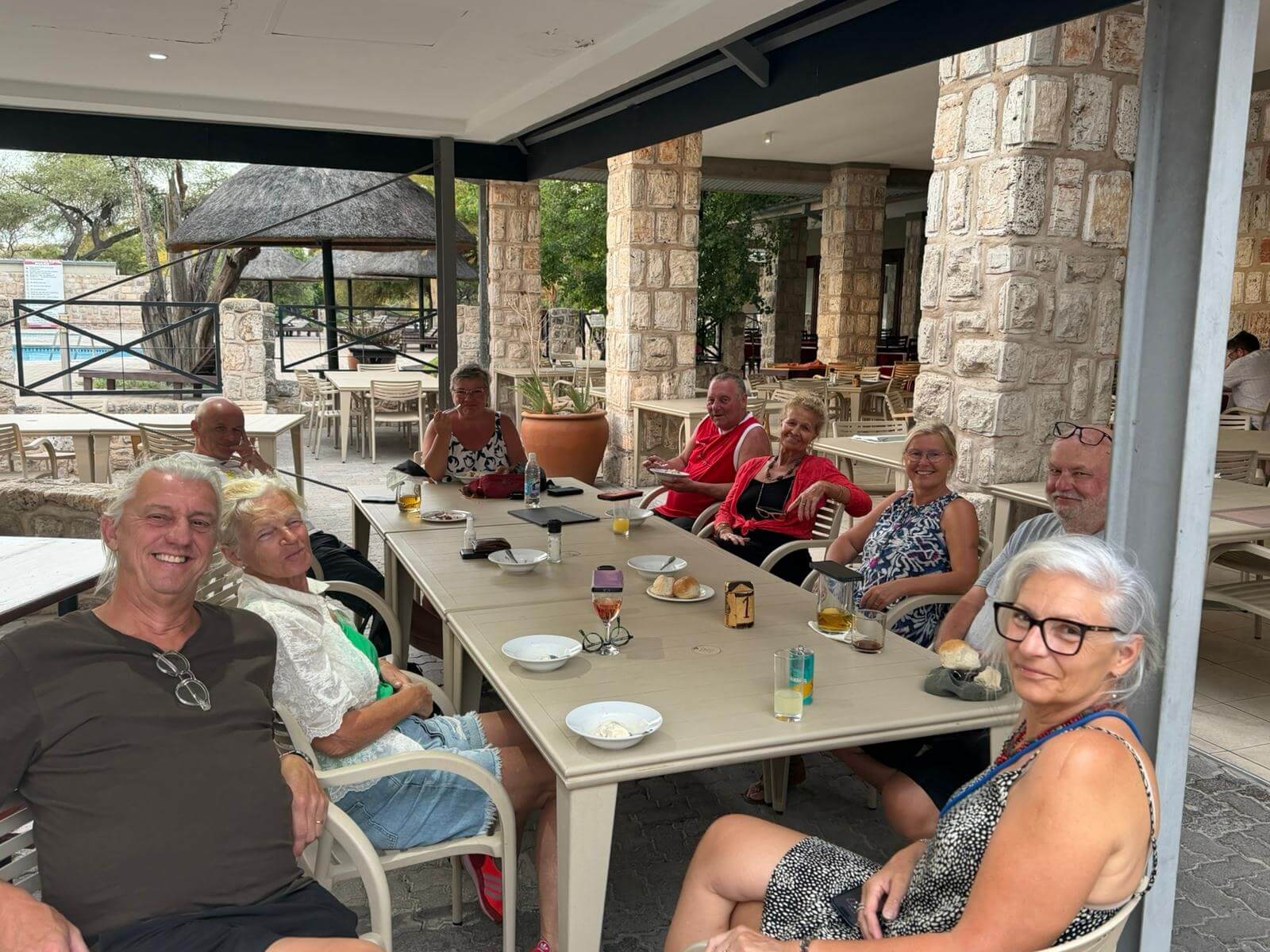 Heute hatte jeder Gelegenheit, noch einmal seine individuelle Big-5-Liste zu vervollständigen. Der Tag war aber wieder mit gemischtem Erfolg gesegnet. Alle waren hauptsächlich unterwegs, um endlich die fehlenden Leoparden oder wenigstens einen Geparden abzulichten. Aber sie liefen niemandem vor die Linse. Dafür gab es zur Abwechslung Schakale und Hyänen. Nach unserer Teilnehmerberatung zum nächsten Fahrtag und unserem Aufenthalt im Damaraland trafen wir uns im Restaurant des Camps, um bei einem Eis und einem Bier Abschied von der Etosha-Pfanne zu nehmen. Auf uns warten noch viele interessante Gebiete in Namibia.