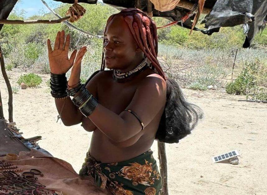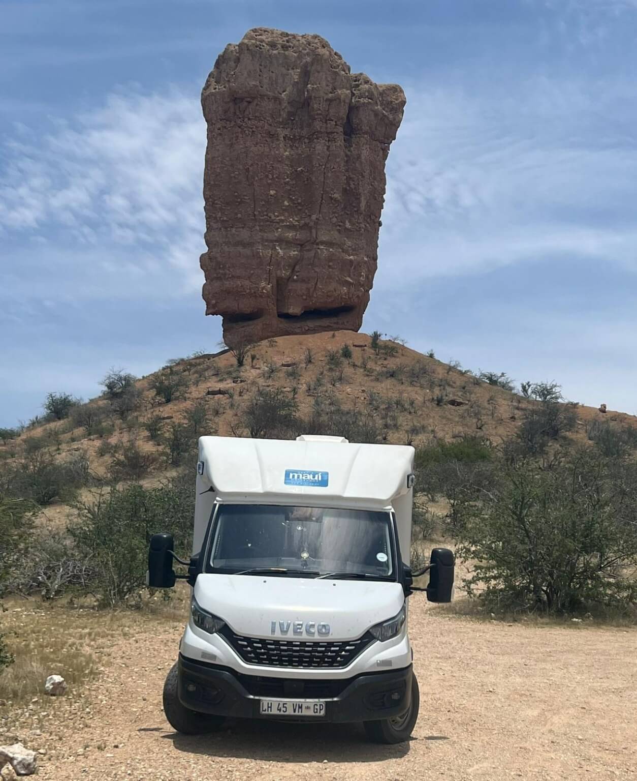 Wir verlassen den Etosha MWR, um in das Land der Damaren zu gelangen. Auf dem Weg liegt Outjo und in Outjo gibt es eine deutsche Bäckerei. Diese wird zur Schlemmeroase der Gruppe. Bei Kaffee oder Cappuccino und leckerem Kuchen hat man schon mal das Gefühl, in einem Wiener Kaffeehaus zu sitzen, auch wenn die Sonne unerbittlich brennt. Weiter geht es zum Naturwunder Vingerklip (Fingerklippe). Vor rund 2 Mill. Jahren haben Wasserfluten des Ugab-Flusssystems diese aus Ablagerungen freigelegt. Heute ragt sie mit 35 m und einem Basisumfang von 44 m als berühmtester Felsen Namibias in den Himmel und lockt Touristen an. In unserem Camp lockt zunächst der kalte Pool. Wir treffen uns dann, um die übernächsten Tage in Swakopmund zu besprechen. Das erlaubt uns, den morgigen Tag frei zu planen. Am Abend trifft man sich beim gemeinsamen Nudelessen und anschließend zum Klönen.